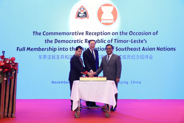 2025年11月3日,外交部副部长孙卫东应邀出席东帝汶驻华使馆举办的庆祝东帝汶正式加入东盟招待会。