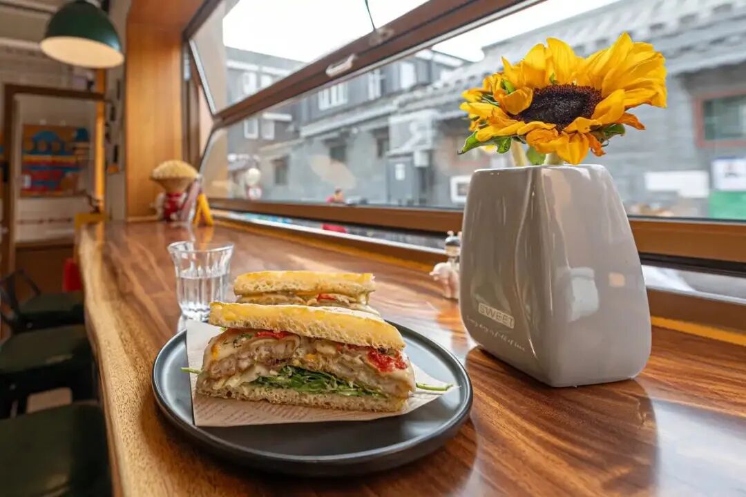 斜对面的55号院咖啡店则是另一种风格,除了精品咖啡,卤肉饭、三明治等简餐成了周边上班族的“午餐首选”。每到午休时间,在这里能看到年轻白领与拎着菜篮子的居民。