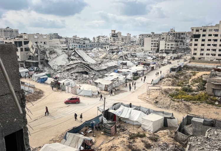 在加沙城废墟中搭建的临时帐篷。资料图 图自外媒