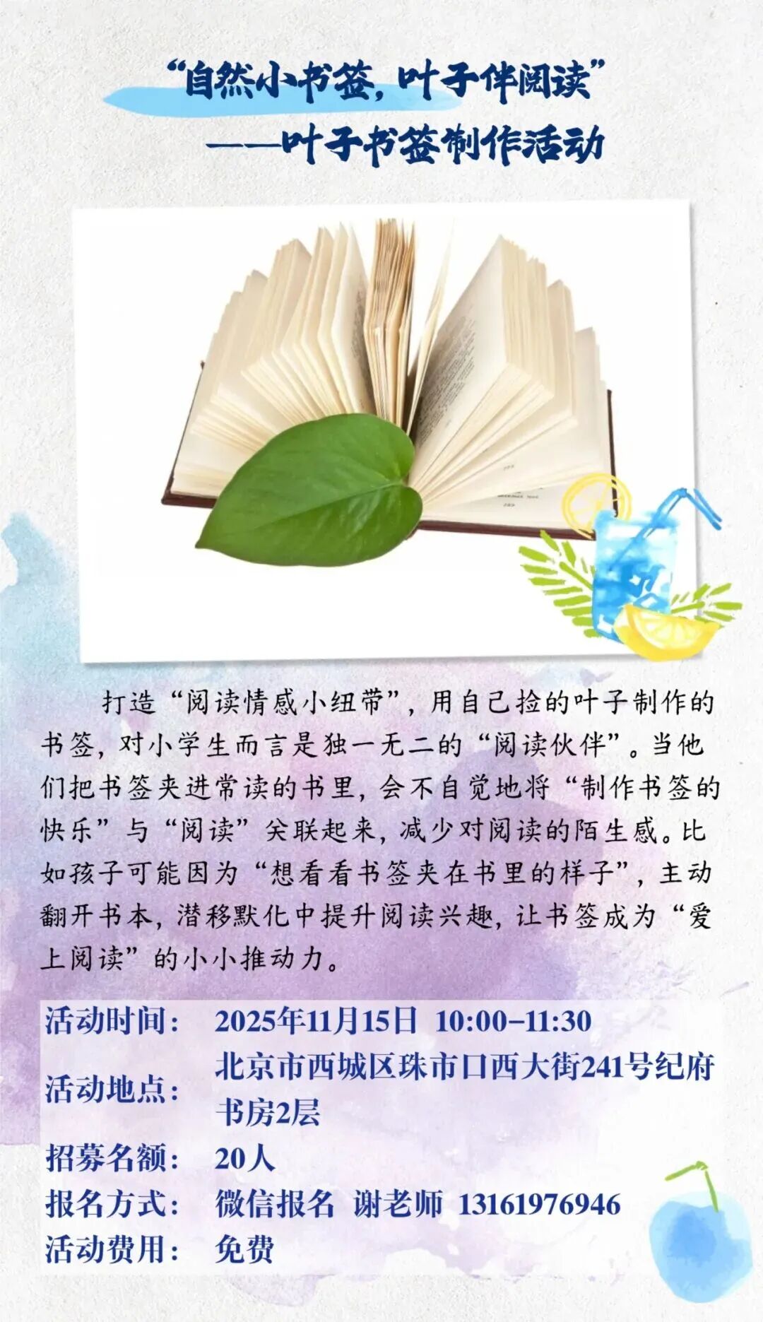 (活动名额有限,请拨打咨询电话进行预约)