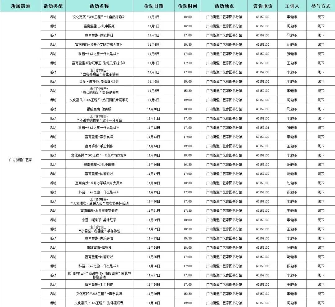 现在,速览北京西城11月“文艺月历”