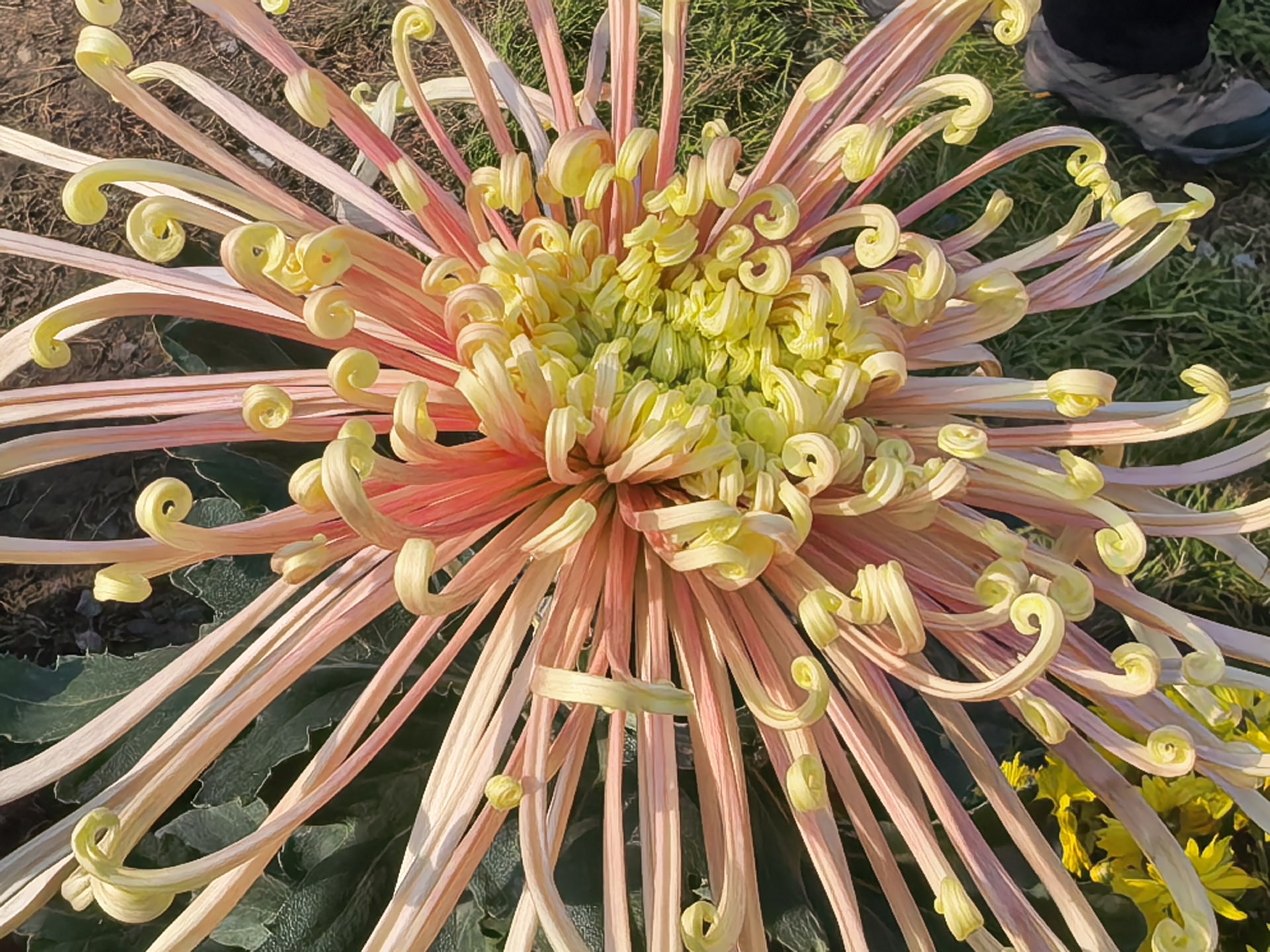 最令人动容的,是那盆名为“鹤舞云霄”的菊花。它的花瓣向上翻卷,形似仙鹤展翅。一位轮椅上的老人在这盆花前久久凝视,他说:“我年轻时也在这里赏菊,如今腿脚不便,但看到这‘鹤舞’,仿佛又回到了青春岁月。”