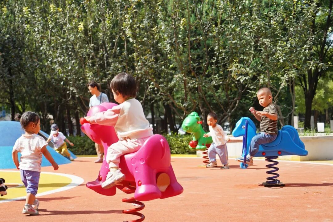 建设彩色塑胶场地,添置以力量型及有氧运动为主的游乐设施、科普设施,让儿童亲近自然、尽情玩耍。