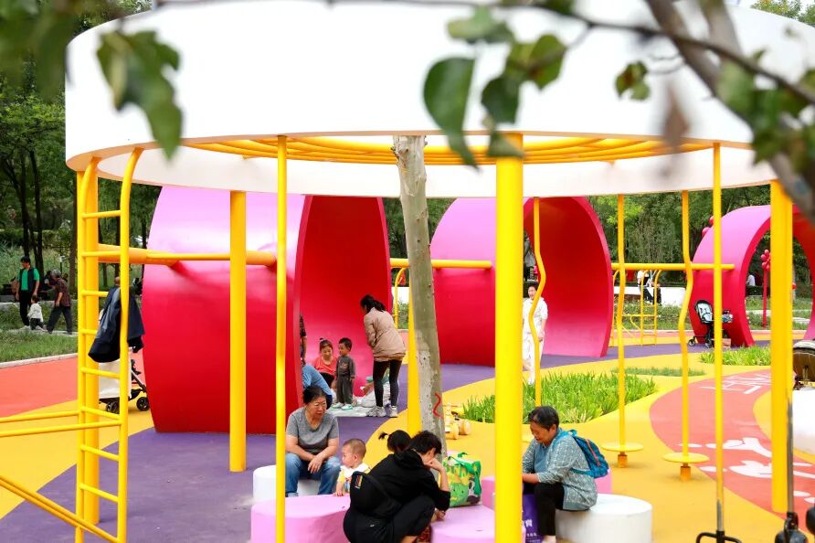 建设适宜照看儿童,并可满足休闲活动需求的中年活动场地,遛娃、健身、赏景一站齐。