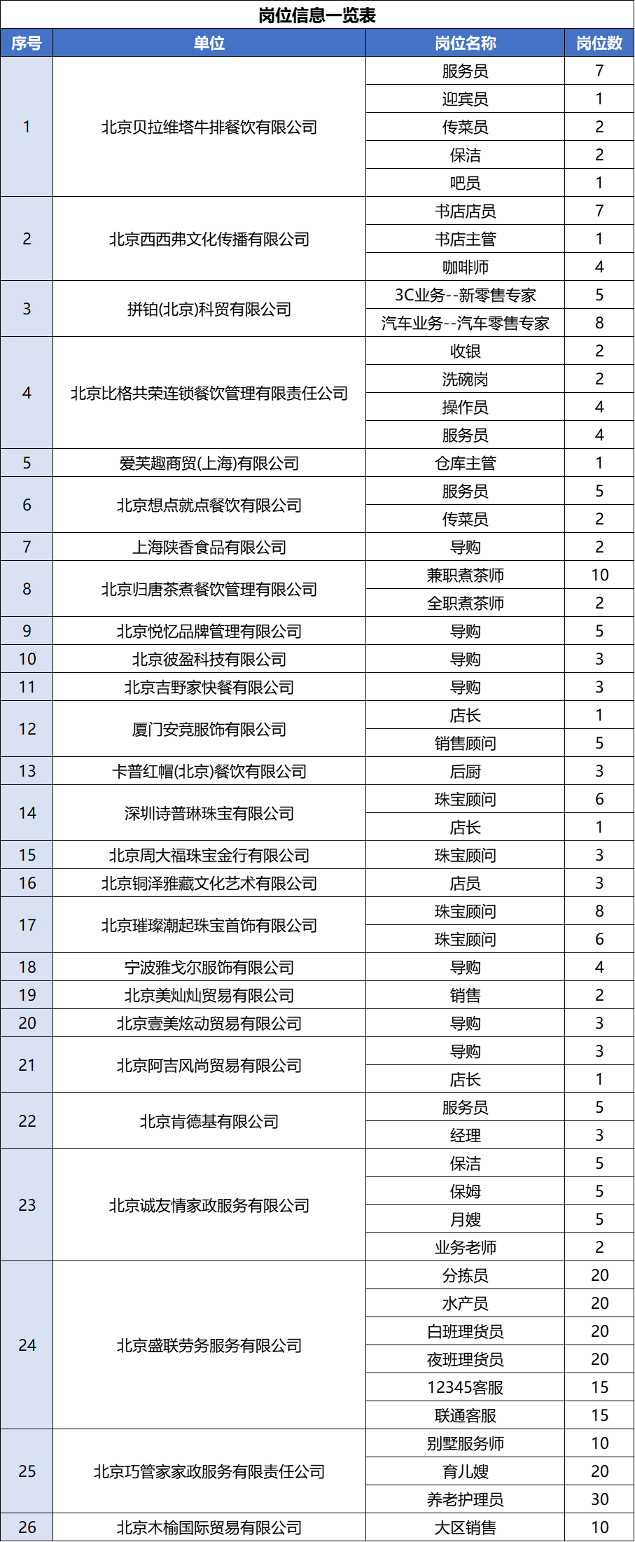 岗位信息一览表