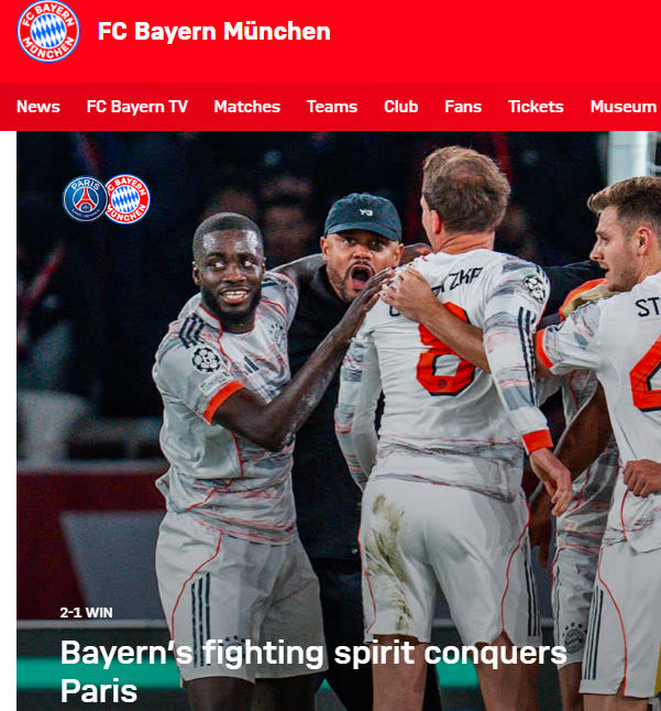 另一场强强对话,拜仁在巴黎王子公园球场收获梦幻开局,第4分钟就由利物浦旧将迪亚斯门前补射确立优势。比赛第32分钟,迪亚斯又在前场抢断后再入一球。不过,半场结束前,迪亚斯因为背后铲倒阿什拉夫被红牌罚下。下半场比赛,“大巴黎”利用人数优势连续施压,由若昂·内维斯追回一球,但最终无力弥补一球差距,主场1比2失利。