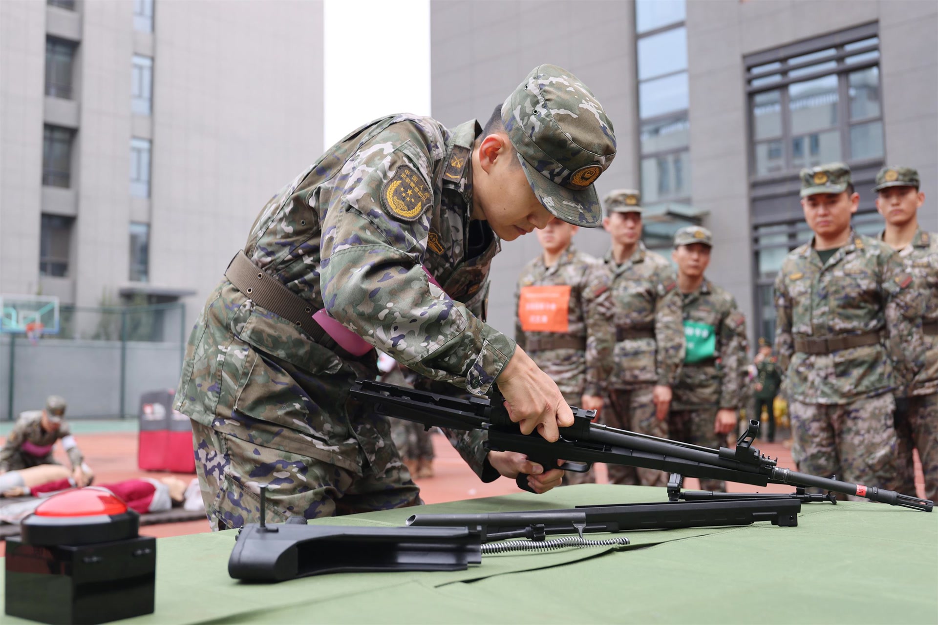 本届运动会新增的后勤专业兵比武,更添“战味”与“匠气”。炊事员在案前挥刀如飞,切出的萝卜丝细如发丝,展现精湛厨艺;司务长指尖翻飞,精准高效地完成物资核算,尽显专业素养;卫生员迅速采取跪姿施救,包扎固定、心肺复苏等动作一气呵成,熟练掌握急救技能;军械员俯身快速拆解武器,仅用数十秒就完成零件装卸并恢复战位状态。每一项比拼,都是对后勤官兵实战保障能力的生动检验,彰显了后勤队伍的过硬本领。