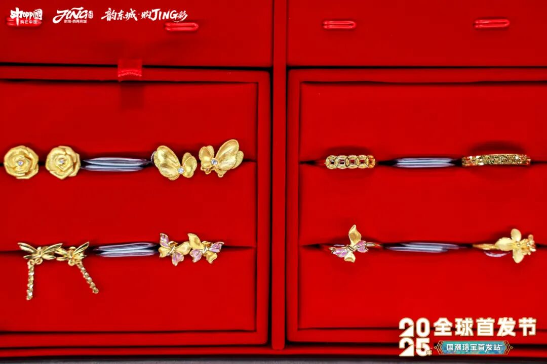 主会场汇聚了包括菜百首饰、潮宏基、BEAUFINA、结绳记、红桥市场等在内的国内知名黄金珠宝及商业品牌。作为本次国潮珠宝首发站的核心亮点,传统工艺与现代设计的融合在各品牌新品中体现得淋漓尽致。潮宏基带来的故宫文化非遗花丝系列,以故宫博物院藏“粉彩镂空转心瓶”为设计灵感,将花丝镶嵌、古法金工艺结合,推出的新品一经亮相就吸引众多消费者驻足。菜百首饰同步首发浮光蝶影系列、东方花园系列新品,其马年贺岁“抱抱”“多多”系列金饰备受关注。
