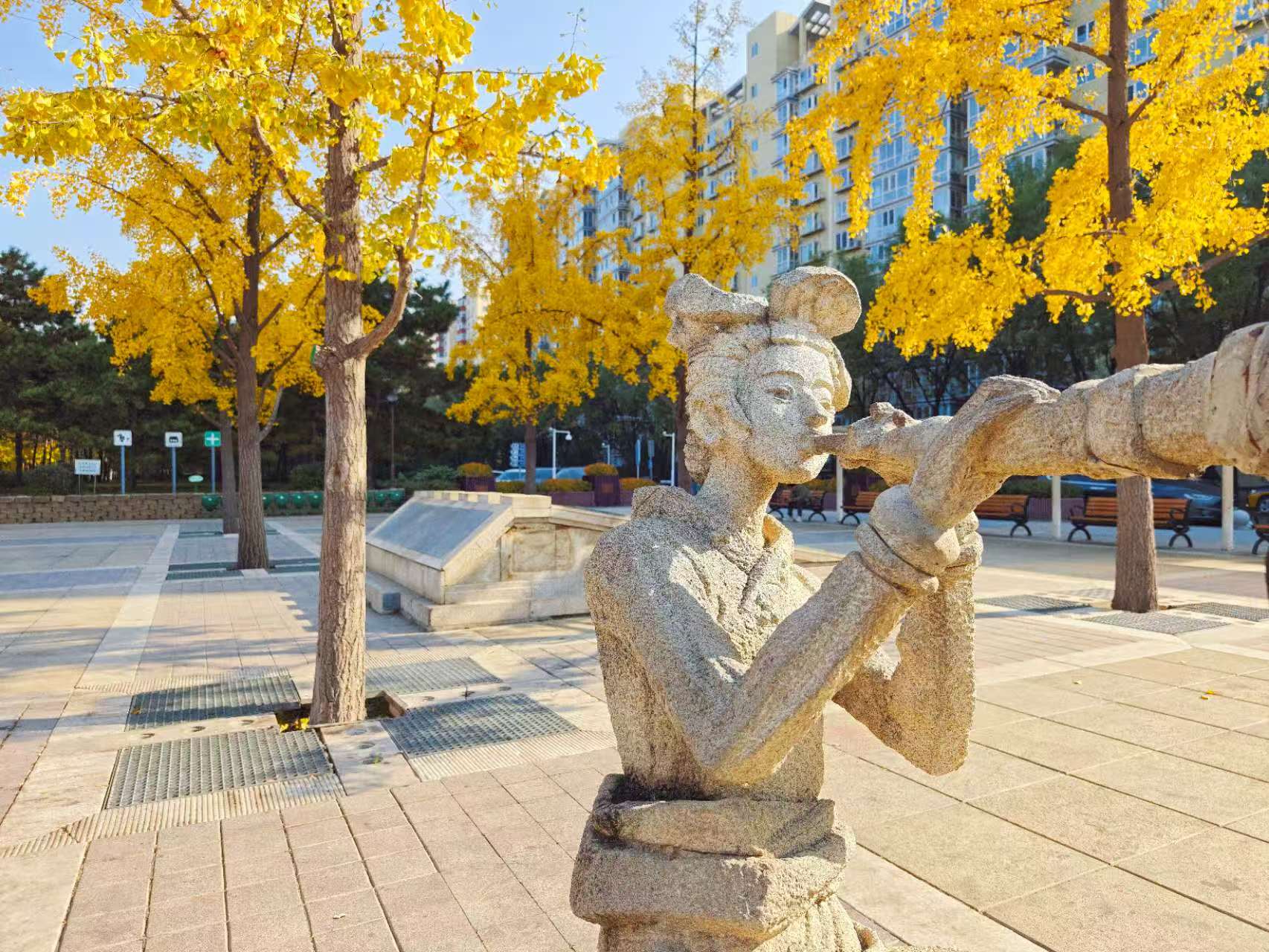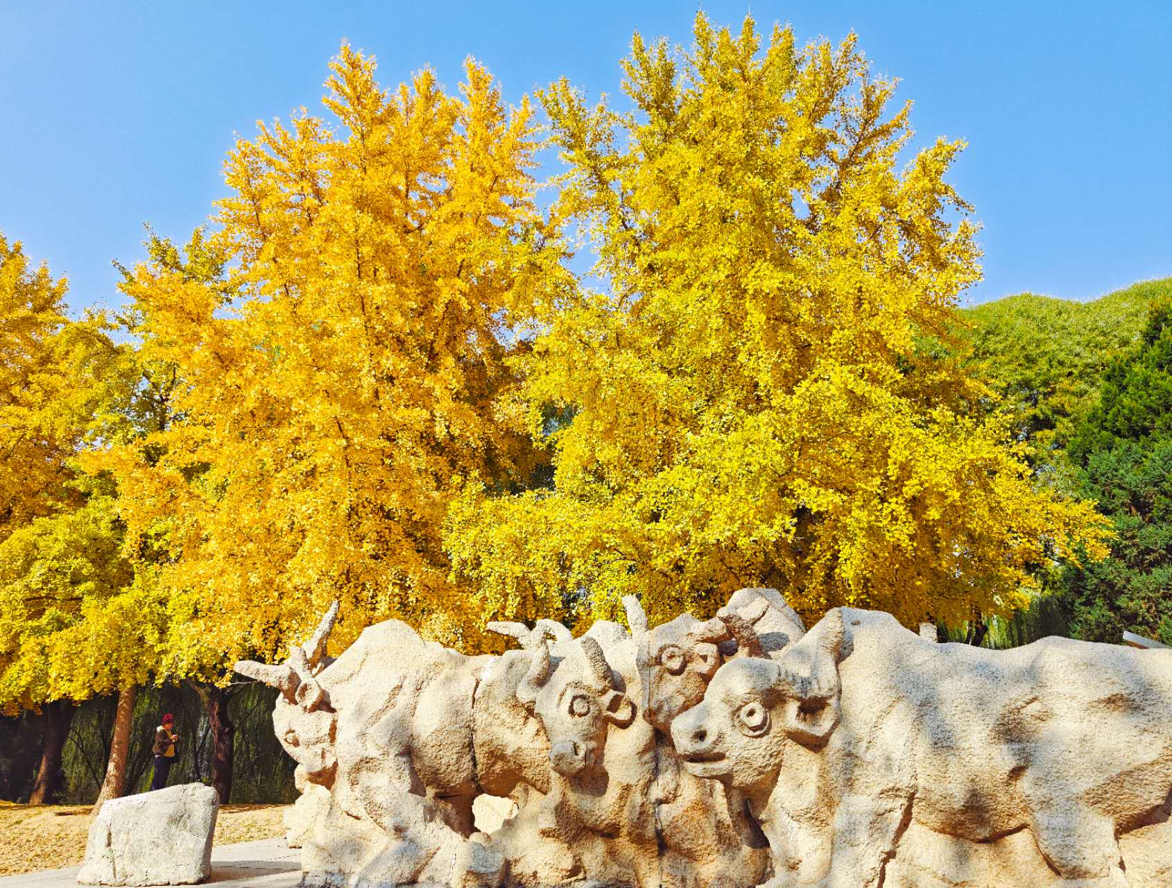 城垣遗址秋色深,石雕披上“金缕衣”
