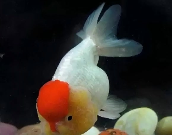 刘先生培育的最出色的鱼,是额头红(也作鹅头红)。额头红是由红虎头蜕变而来:红虎头将周身的红色褪去之后变成了银白色,单单留下额头堆肉的隆起部分为深红色,色彩对比鲜明,被誉为金鱼中的尤物。由于繁殖选育不易,故而价格昂贵,养者寥寥。而刘先生却养着几十尾额头红,每尾一斤多二斤来重,要哪儿有哪儿,挑不出毛病来。