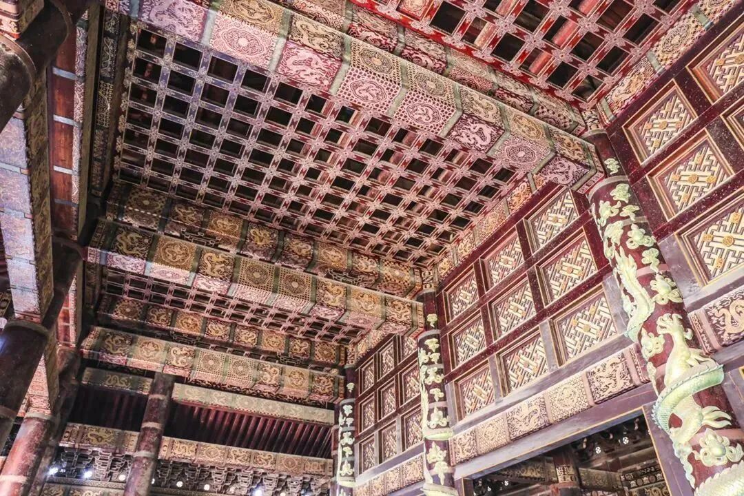遍访各处建筑,用此木建殿堂者,唯有慈禧陵一处,其价值堪称寸木寸金,在三座大殿64根柱子当中,除隆恩殿7米高的金柱、中柱为包镶外,其余均为直径1米、高3.65米的独根笔直的原木。这些名贵的材料,构成了慈禧陵精美之一绝,故慈禧陵大殿实属当之无愧的“花梨大殿”。