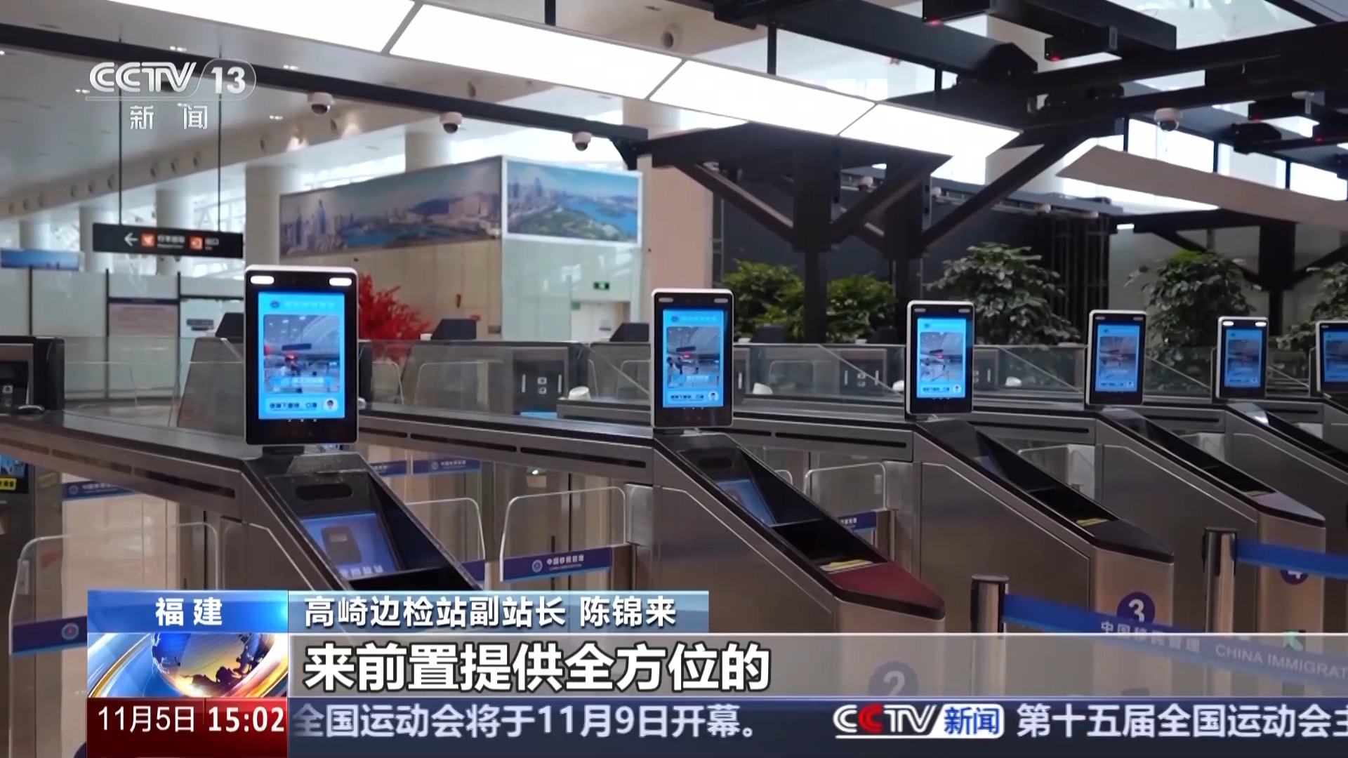 高崎边检站副站长 陈锦来:智能快捷通道采用了更加先进的智能互动屏,前置提供全方位的温馨提示和操作指引,安装多角度摄像头,进一步提升了面相灵敏抓取、瞬时采集、智能识别的速度,配套高灵敏度指纹仪,进一步提升出入境旅客的通关便捷度和体验感。