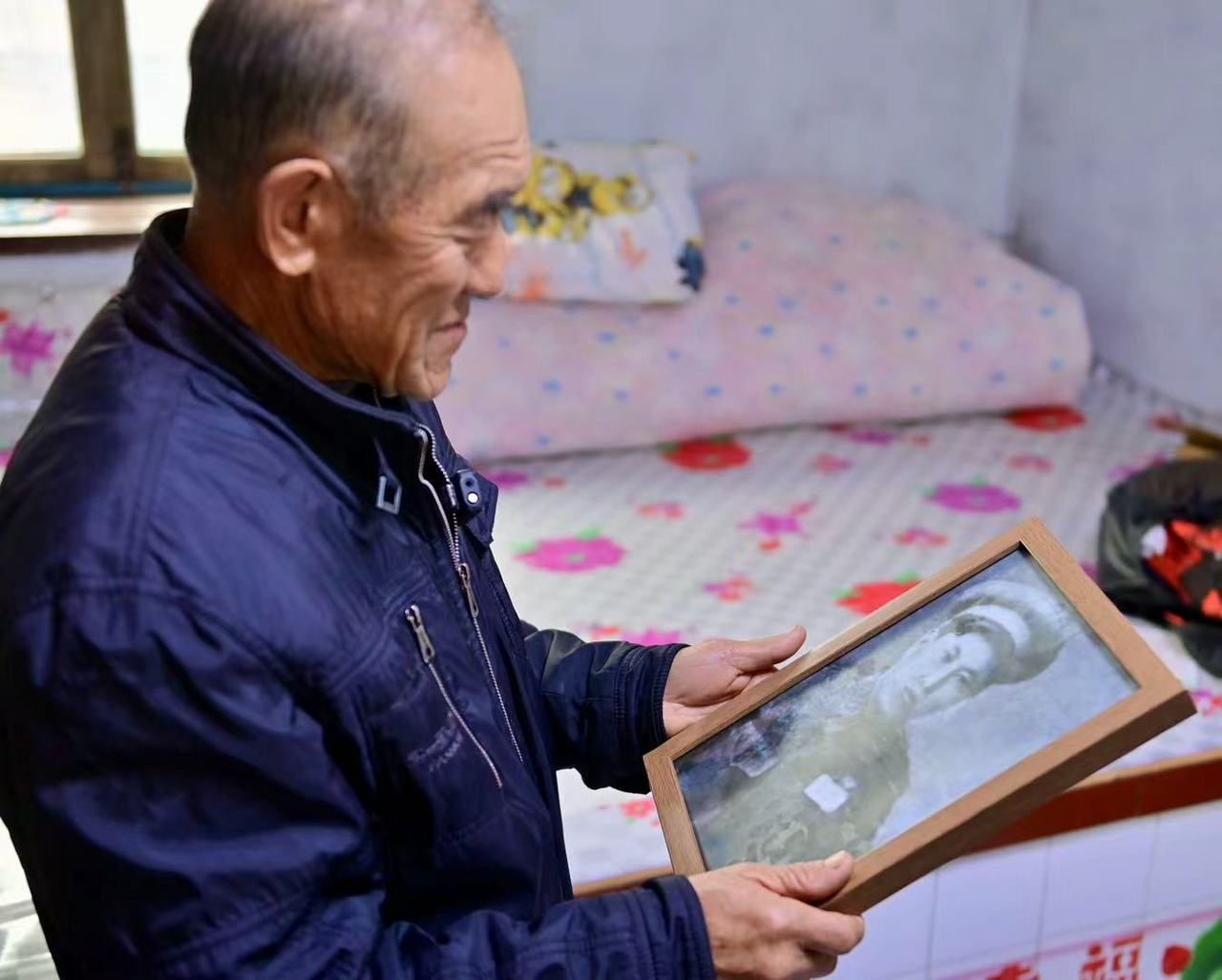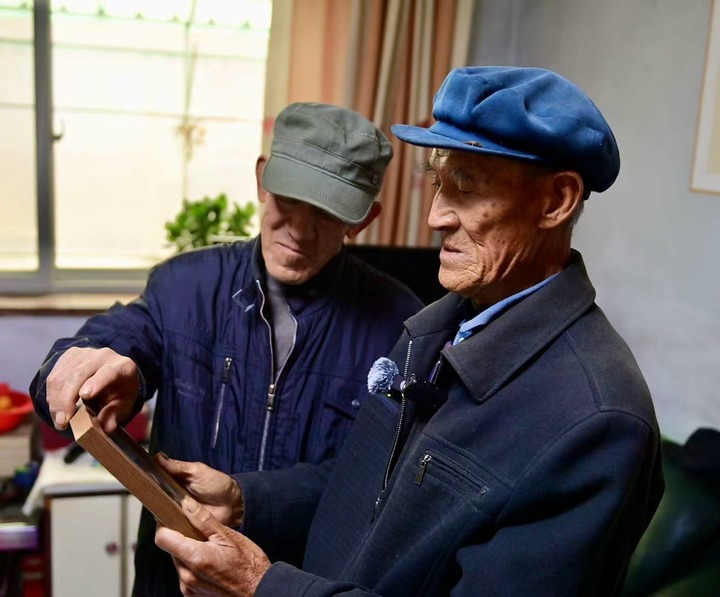 11月5日,记者再次来到辽宁省丹东市凤城市赛马镇幸福村,将洗好的志愿军烈士杨忠贵的照片,交到他的儿子杨树武手中。
