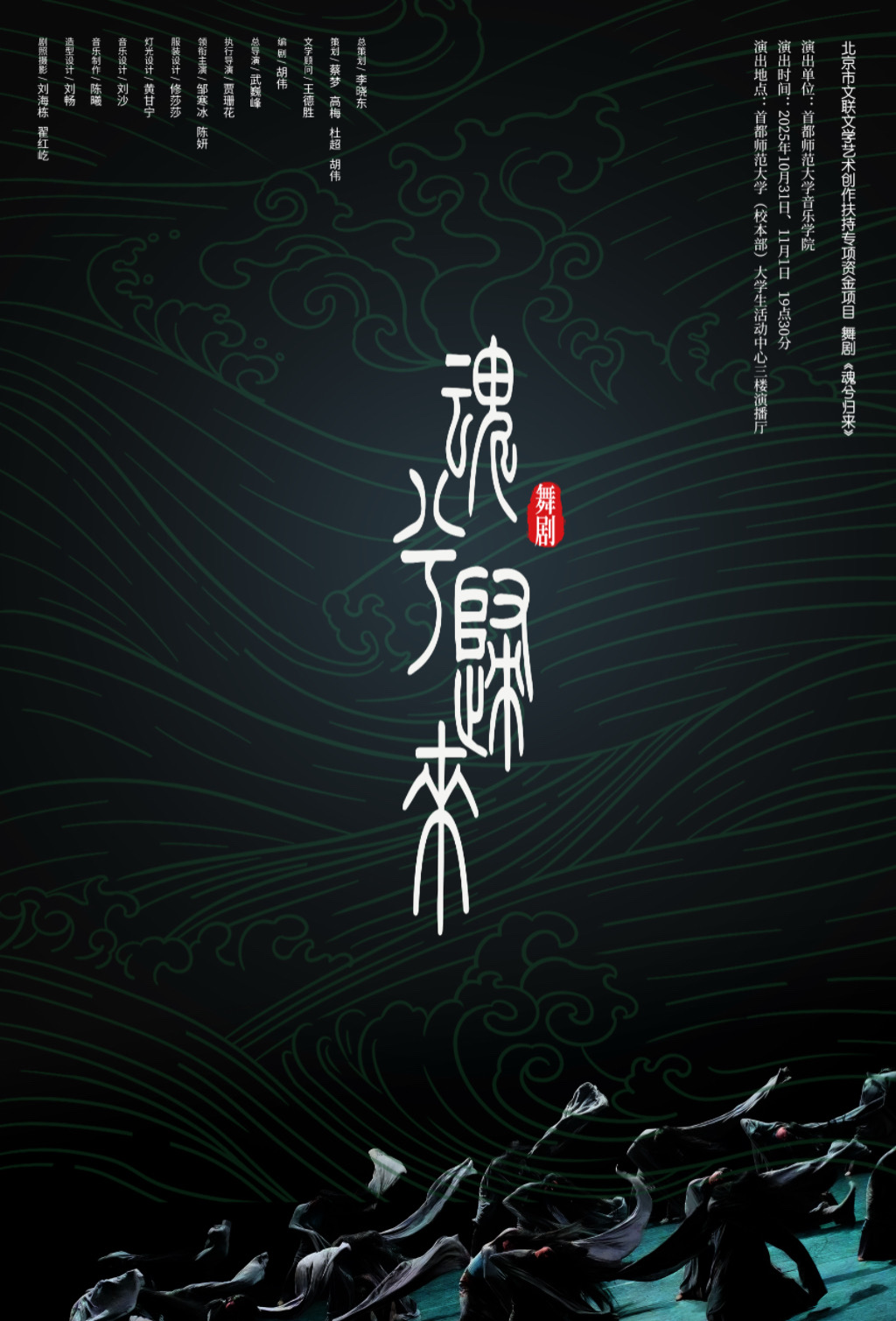 10月31日至11月1日,音乐学院原创舞剧《魂兮归来》在我校大学生活动中心首演。学校党委副书记孙晓峰,党委常委、副校长韩继华,艺术与美育研究院院长王德胜、音乐学院党委书记李晓东以及相关人员出席活动,学校各院系师生与首都舞蹈界同行专家、各大高校代表共同观看了演出,现场反响热烈、好评如潮。该剧由音乐学院组织策划,胡伟教授作为项目负责人及舞剧编剧,武巍峰教授作为总导演,联合外请导演贾珊花共同完成,是继舞剧《高山流水》之后打造的第二部原创舞剧,同时被列入北京市文联2024年文学艺术创作扶持专项资金项目。