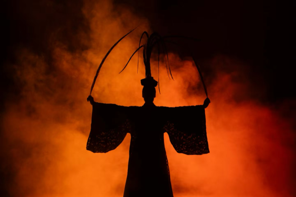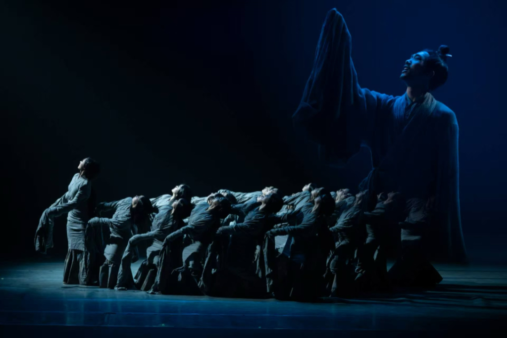 舞剧《魂兮归来》深植于屈原的《招魂》诗篇与其不朽精神,以舞蹈为笔,再现了诗人于动荡时代中的精神坚守与生命抉择。作品以其精湛的叙事与恢弘的意象,成功铸就了一部属于屈原的视觉史诗。全剧分为《哀》《幻》《逝》三幕,其中尾声《香草美人》舞蹈,曾入围中国舞蹈“荷花奖”古典舞终评并斩获北京舞蹈大赛专业青年组群舞创作一等奖,并在中国文联主办的“艺苑撷英”以及“学习强国”学习平台进行展播。