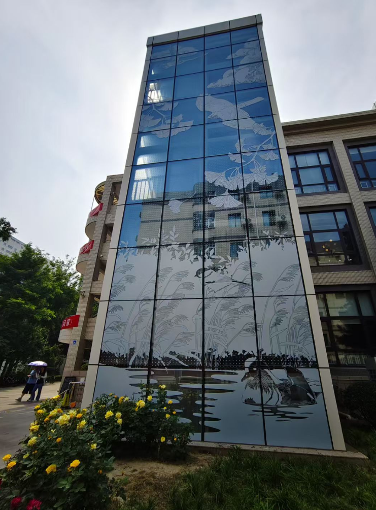 自2021年起,北京林业大学生态与自然保护学院和谐家园志愿者协会就在校园内开展鸟撞监测工作,累计记录到32起鸟撞事件。为预防此类事件,去年10月,学校综合保障部批准社团对星泉广场的6块玻璃护栏进行试点改造。试点成功后,学生们向校方提出建议,希望在校内推行防鸟撞设施改造。社团负责人与设计志愿者们用了近一年时间先后对其他地方进行改造。截至目前,已对校内三处共计400多平米玻璃区域完成防鸟撞改造。