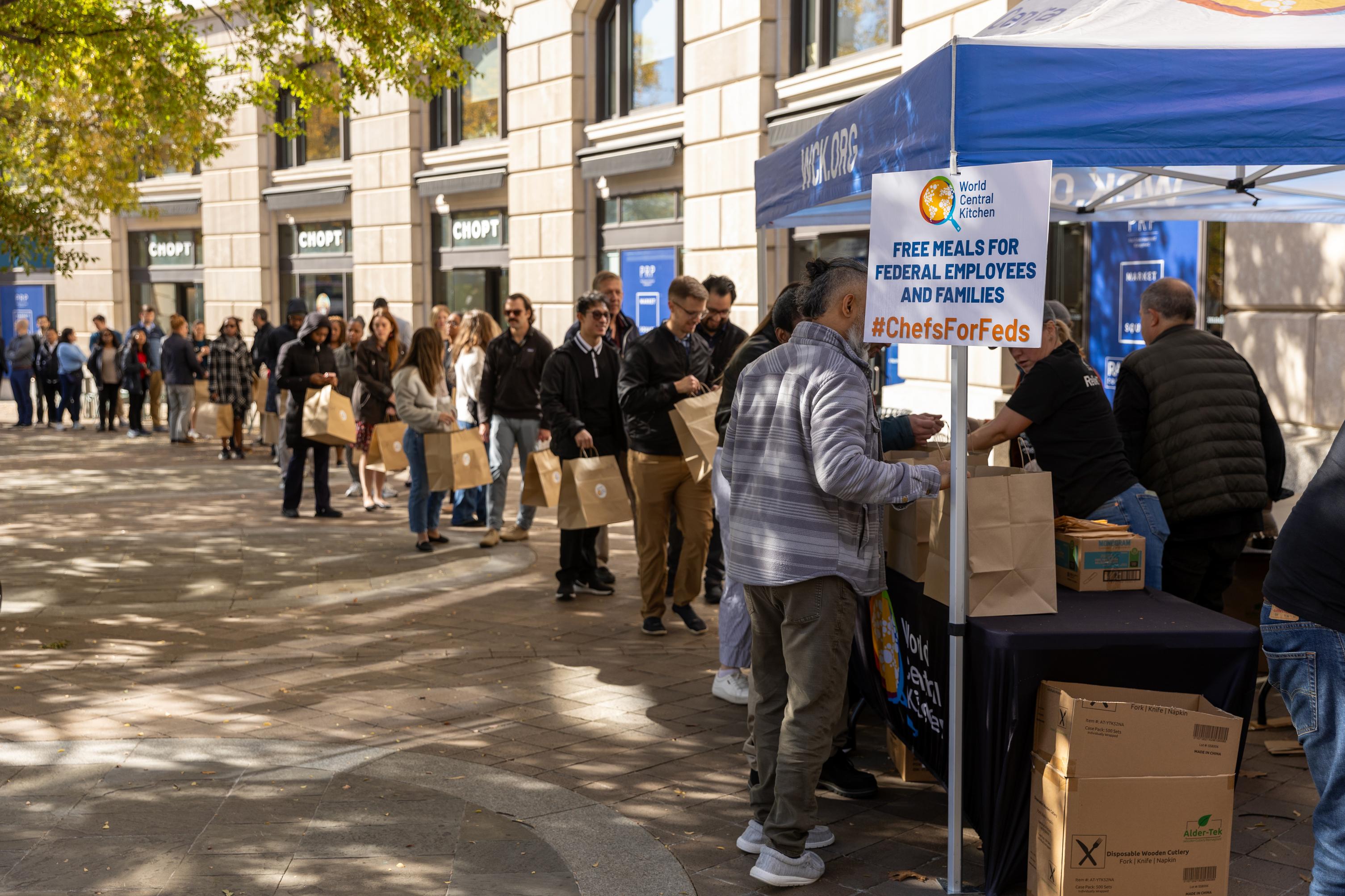 当天活动的主办方是慈善组织“世界中央厨房”。据了解,该组织从10月27日起在华盛顿市区设立多处救济点,截至11月5日早上,已发放超过3.6万份食物。除了华盛顿市中心,他们还在机场、空军基地等地设立救济点。现场工作人员表示,5日当天来领免费午餐的人数明显增加,库存消耗速度明显加快。