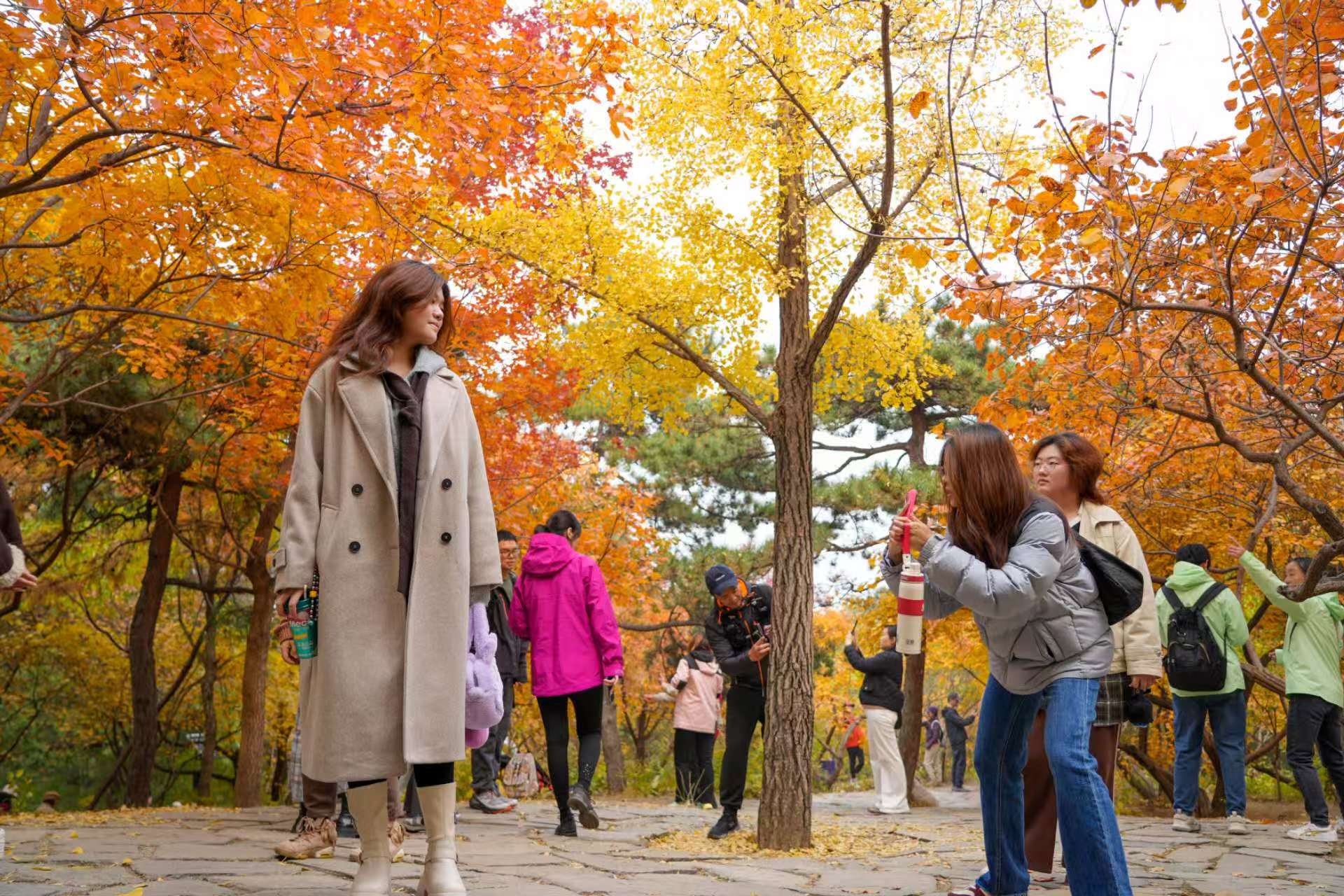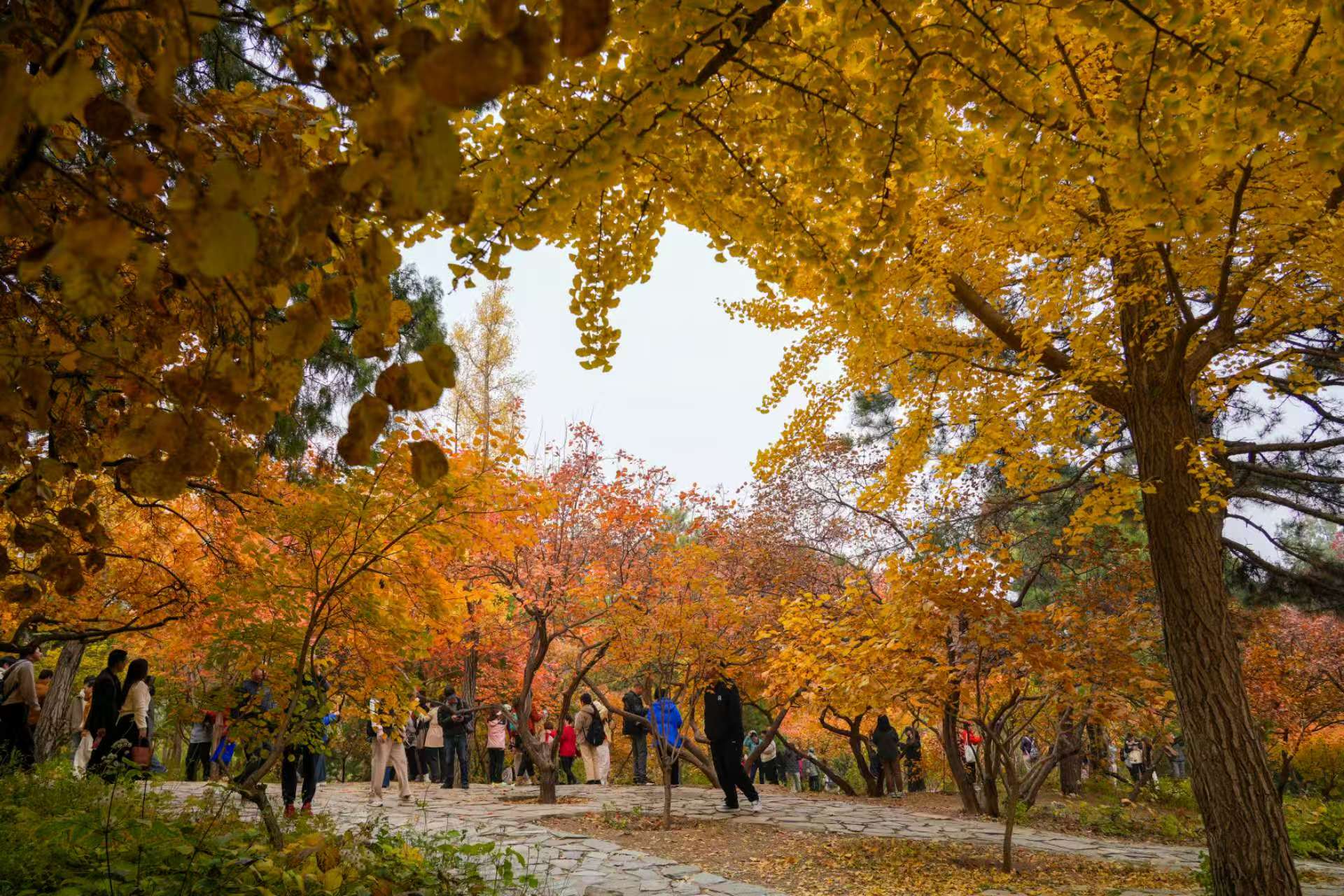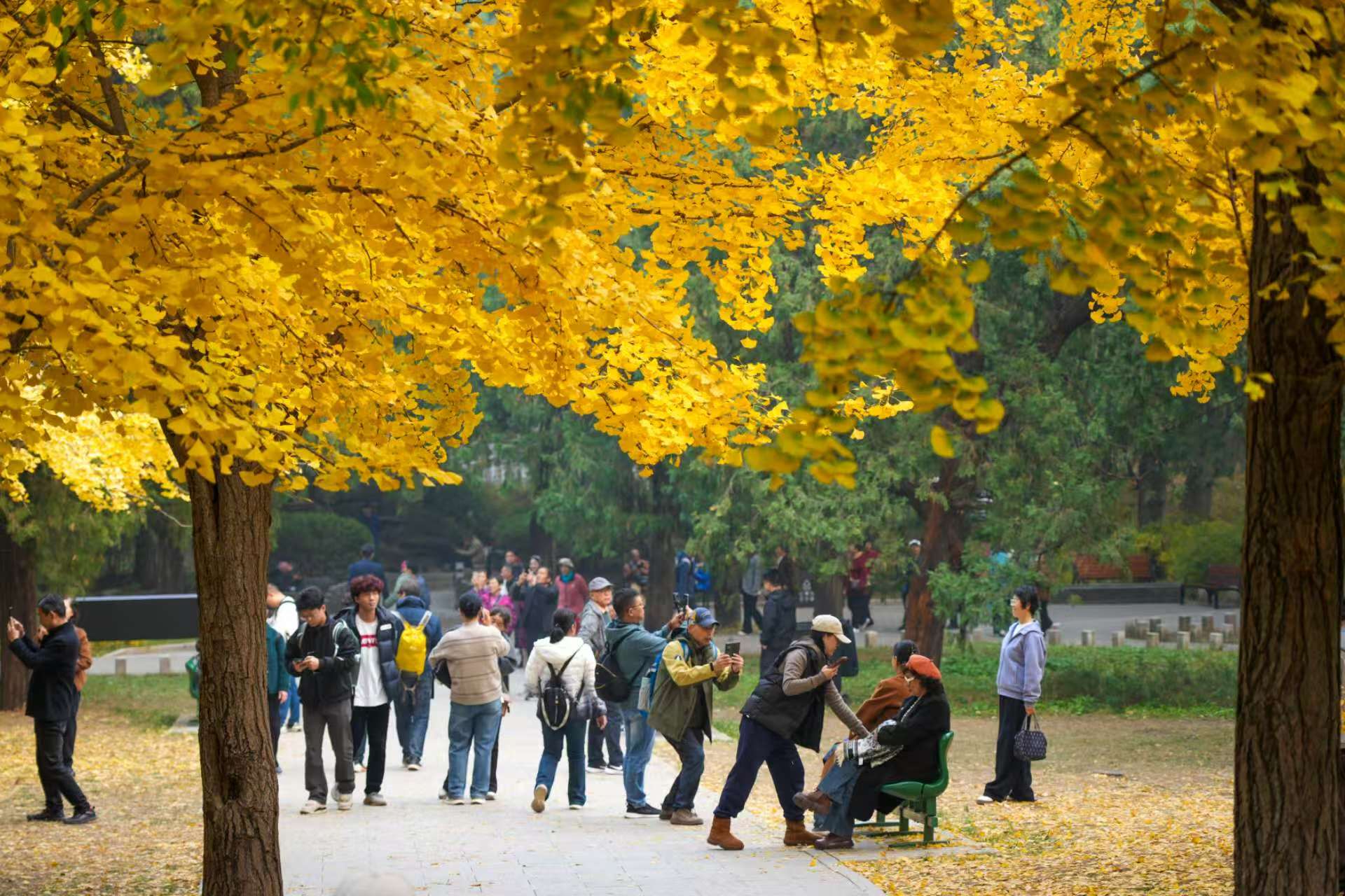 在这几处景区里银杏树冠饱满、色泽金黄,在丽瞩楼前还摆放着“九三阅兵观礼椅”,是不容错过的绝佳打卡位。微风拂过,落叶如金雨纷飞,成为摄影爱好者和亲子家庭的热门打卡地。