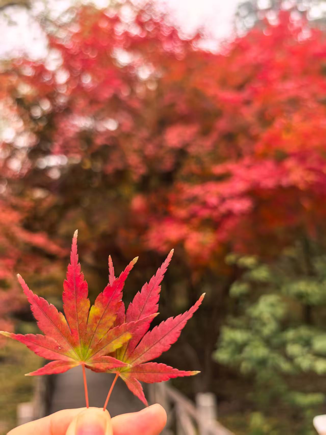 据香山公园红叶物候观测小组监测,目前园内彩叶植物变色率已达75%-85%,落叶率为35%-45%,形成以红、黄、橙为主色调的立体秋色景观,吸引了众多市民游客前来打卡留念。