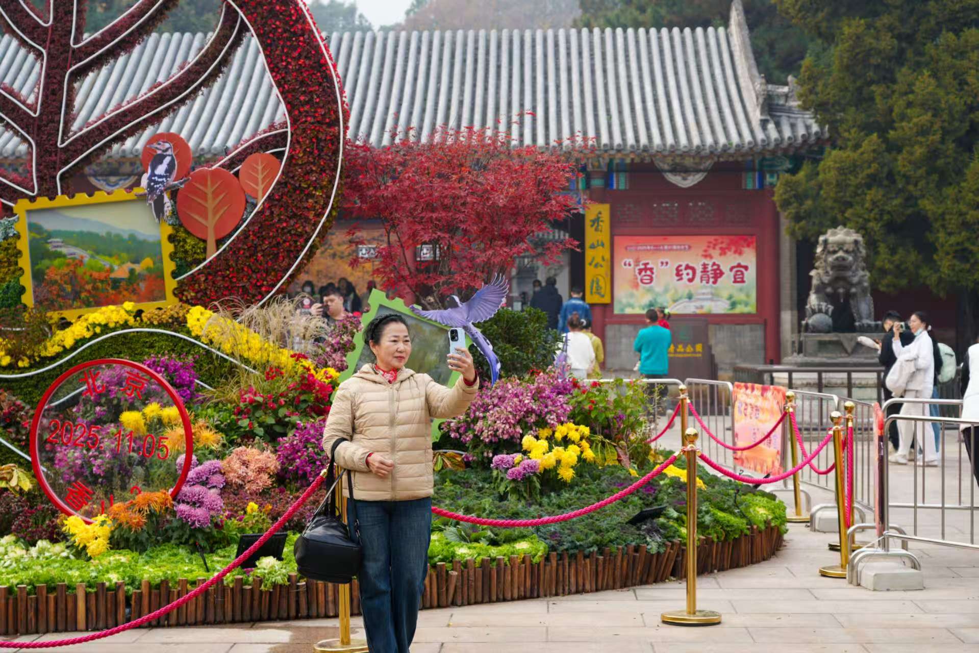 今年的“北京晚报·香山红叶节”已近尾声,但秋意未散,枝头叶梢间余韵犹存。黄栌、银杏、元宝枫等彩叶树种,与亭台楼阁、古寺灰瓦交相辉映,共同勾勒出一幅绚烂而静谧的山地园林秋景图。
