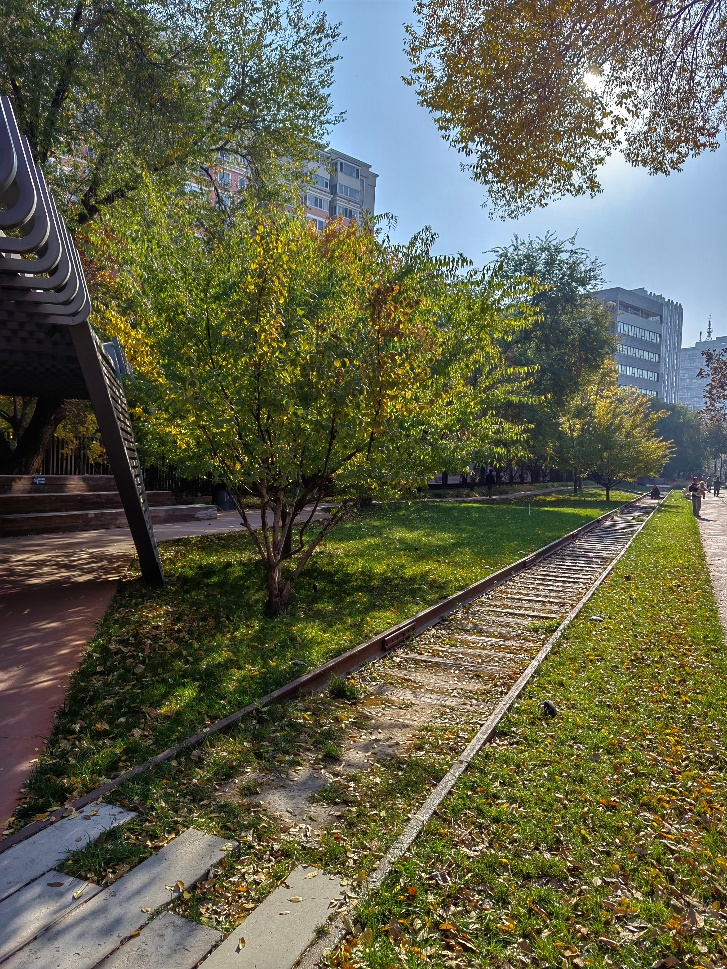 秋日暖阳正柔和地铺洒在清华园车站旧址的铁轨上,把锈色的轨枕染得愈发温润。铁轨两侧,树叶已换上金黄秋装,几丛红叶点缀其间,与青松形成鲜明撞色,把秋意衬得格外浓烈。