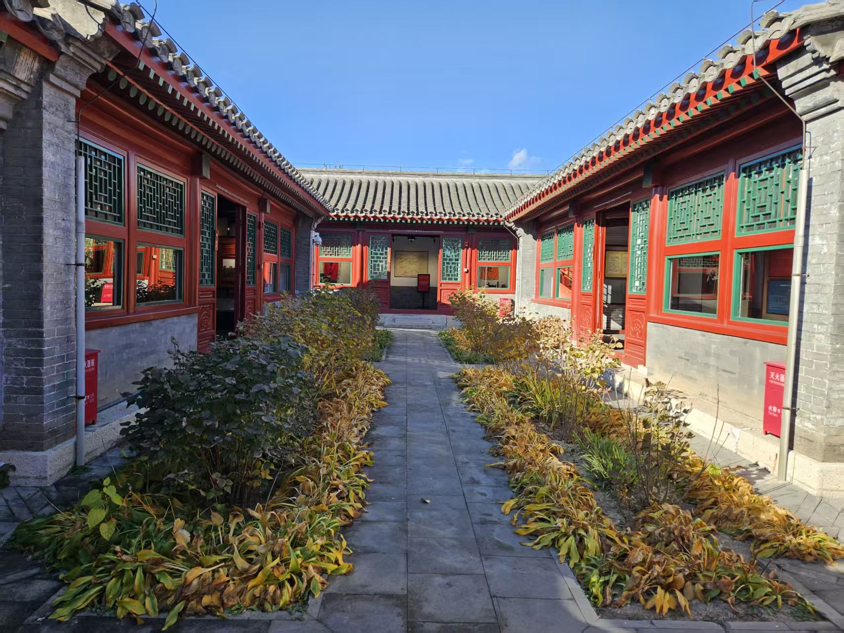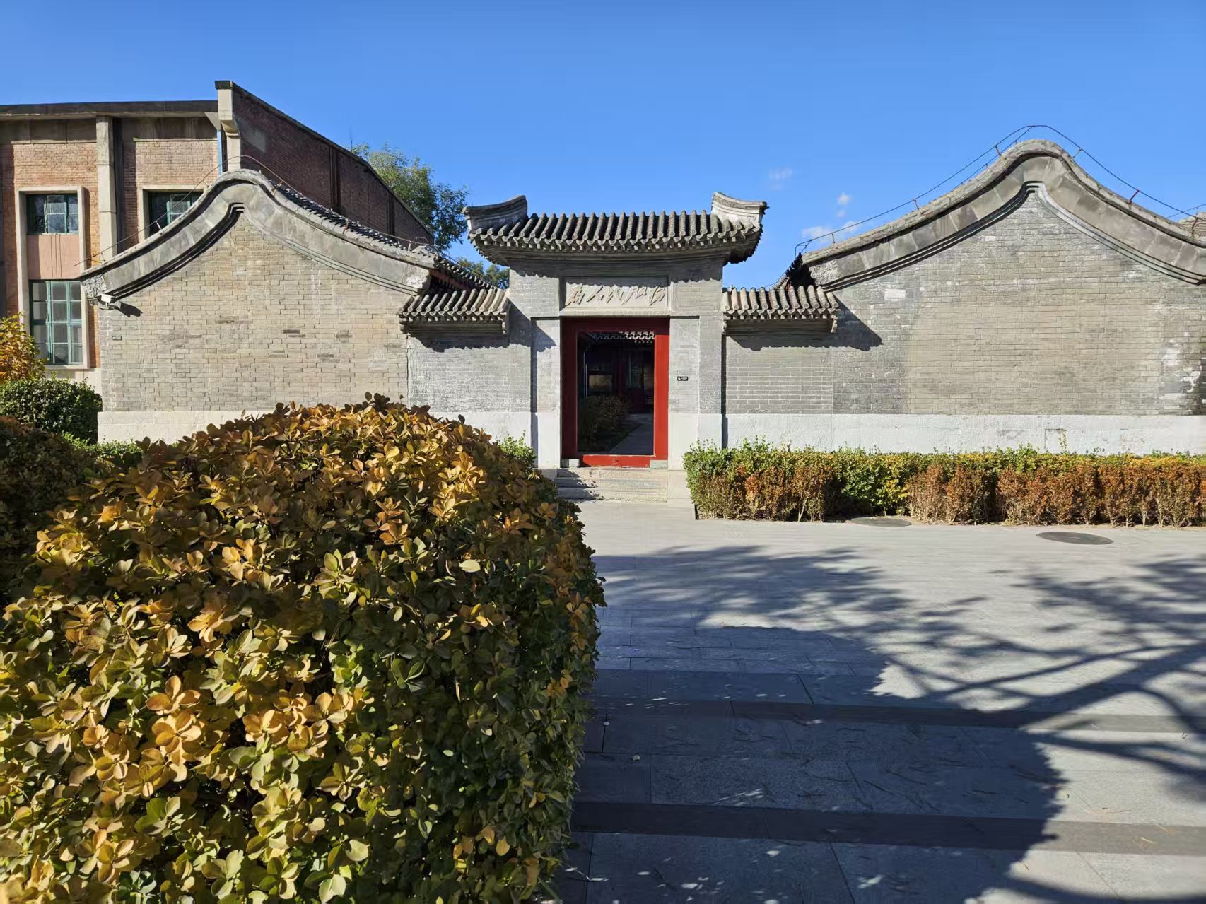 秋风徐来,平津前线总前委旧址已被秋意温柔浸染。馆内秋日的青松挺拔如炬,松针随风轻吟,一旁的竹林依旧苍翠,在斜阳中舒展着劲节风姿。这片承载红色记忆的土地,正洋溢着成熟的生机。
