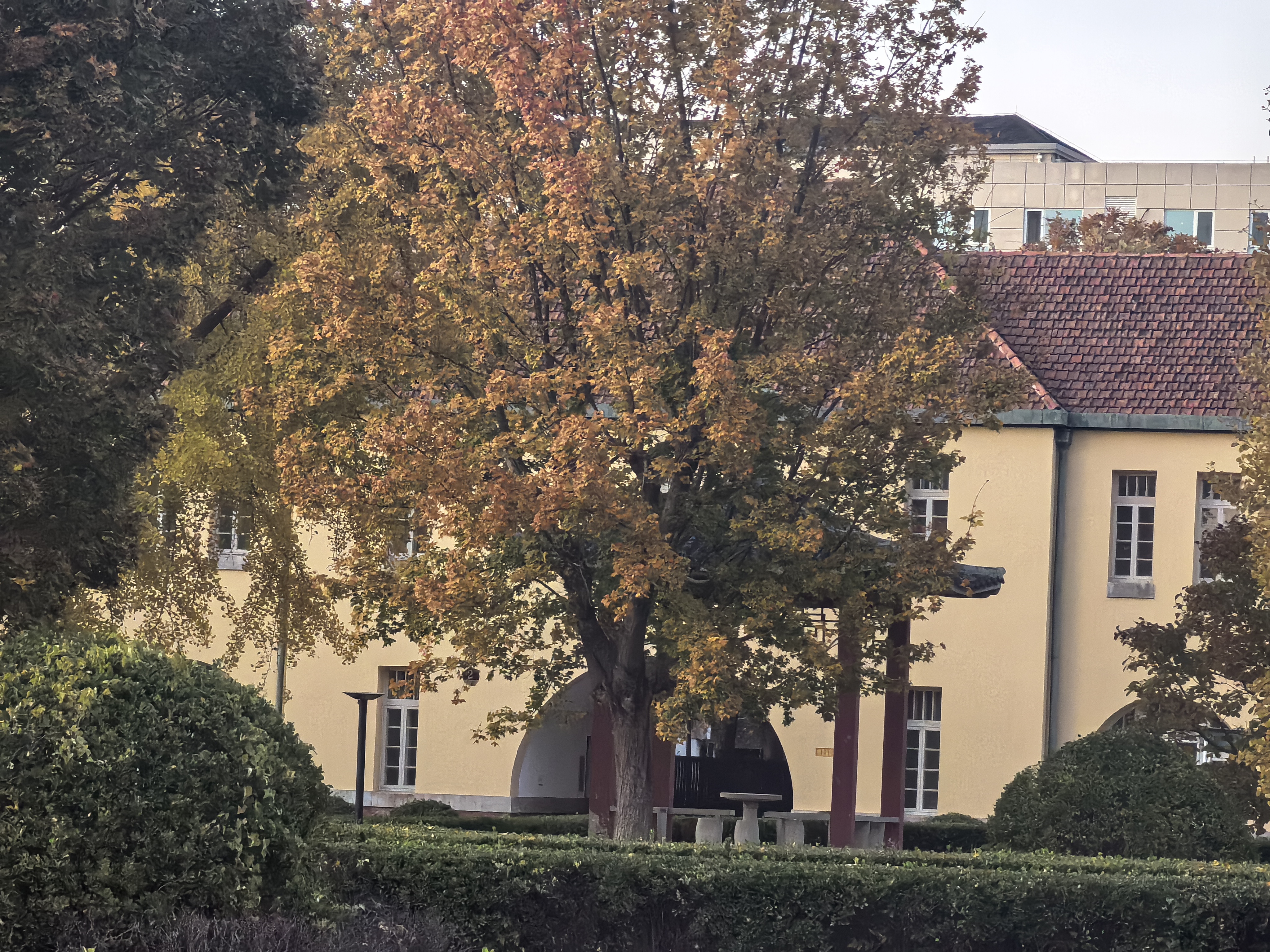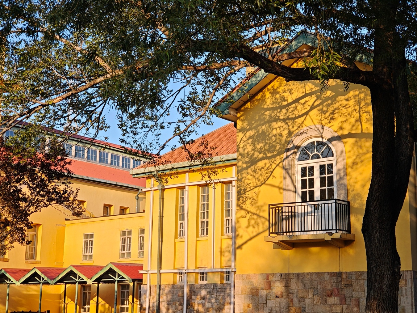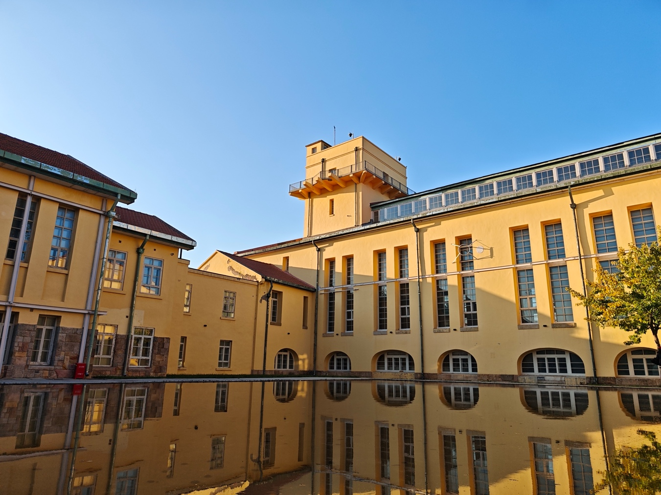 四九一电台旧址,这座始建于1918年的百年历史建筑群,秋日里焕发出独特魅力。黄色欧式建筑与秋日暖阳交相辉映,仿佛穿越回德国北部的街头,随手一拍都是电影感十足的秋日大片。内水台广场倒映着电台旧址楼梯,与金黄的落叶共同编织出一幅静谧的秋日画卷。