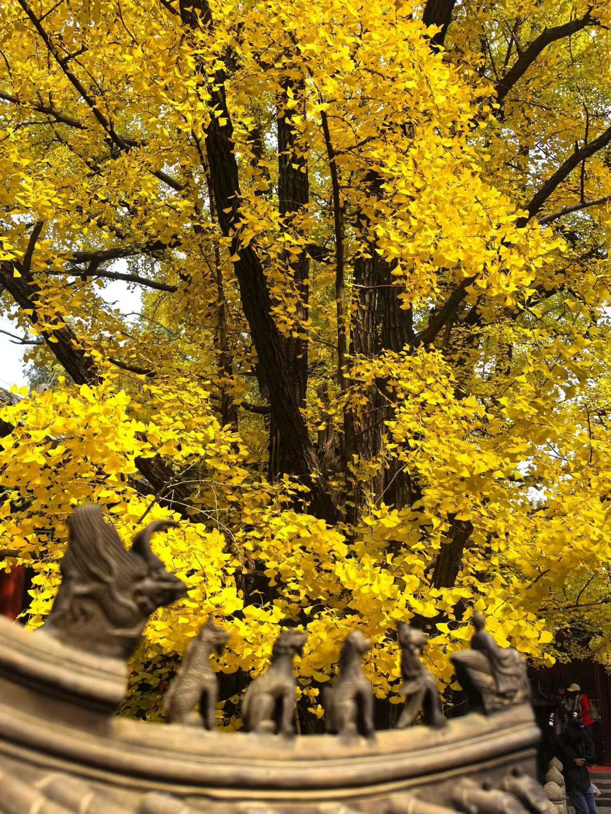 深秋的西山八大处,是一幅静谧而热烈的长卷。长安寺内外,百年银杏洒下遍地金黄,为古刹平添几分庄严与静穆;灵光寺畔,红叶如霞,与禅音钟声相映,绘出“霜叶红于二月花”的禅意画卷。