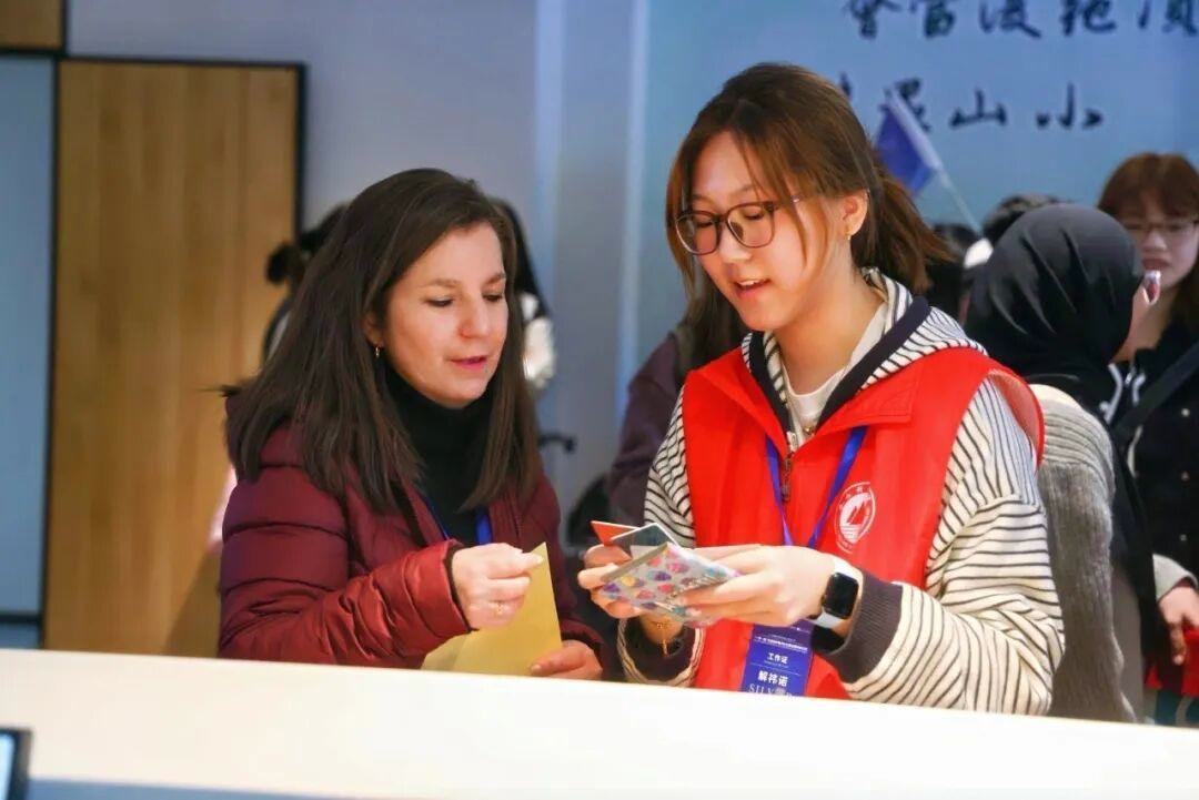 参观学校游泳馆、电影院、图书馆、工程实训中心、育英书院后,学校为全体学员举办见面欢迎会。泰山科技学院常务副校长谢承红致欢迎辞,他引用孔子“有朋自远方来,不亦乐乎?”表达对来宾的欢迎,并介绍了学校结合泰山文化及新教育理念所做的育人探索,祝愿大家在泰科度过美好时光。蓬莱科幻学院副院长宋亚洁以全英文方式,介绍学校发展历程、育人理念、办学特色、校园文化、办学成果和发展愿景,她还特别呈现了学校在国际化办学实践中的探索,介绍了学校留学生来校学习的政策,欢迎21个“一带一路”共建国家及世界各国的学生、友人到泰山科技学院留学、访学。