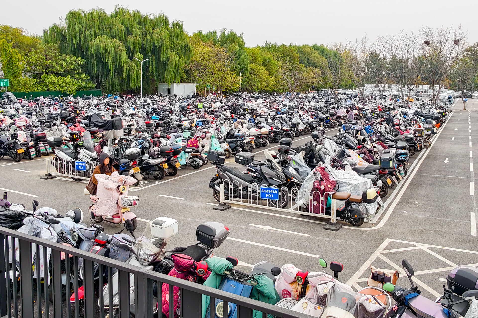 潞城站是连接北京城区与河北燕郊地区的重要通勤节点。由于地理位置特殊,早晚高峰期间,非机动车尤其是电动自行车停放需求极大。