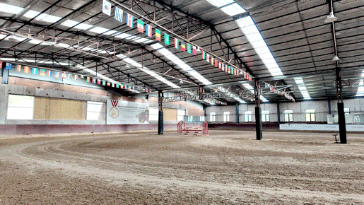 菲利普马术课堂入口处,一栋暗红色砖墙的建筑格外显眼。这是由旧厂房改造而成的室内马术训练馆,专业的石英砂训练场地平整开阔,训练器材有序陈列其间。