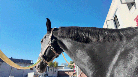 沿着训练馆往里走,一栋二层小楼便是马匹的“家”。还未靠近,几匹骏马已从窗口探出头来,有的甩着尾巴,有的轻轻嘶鸣,仿佛在热情“打招呼”。
