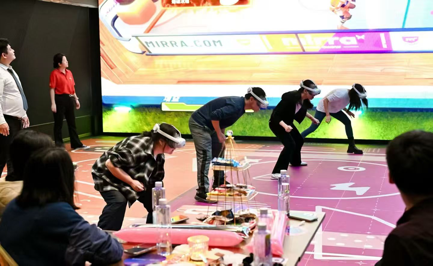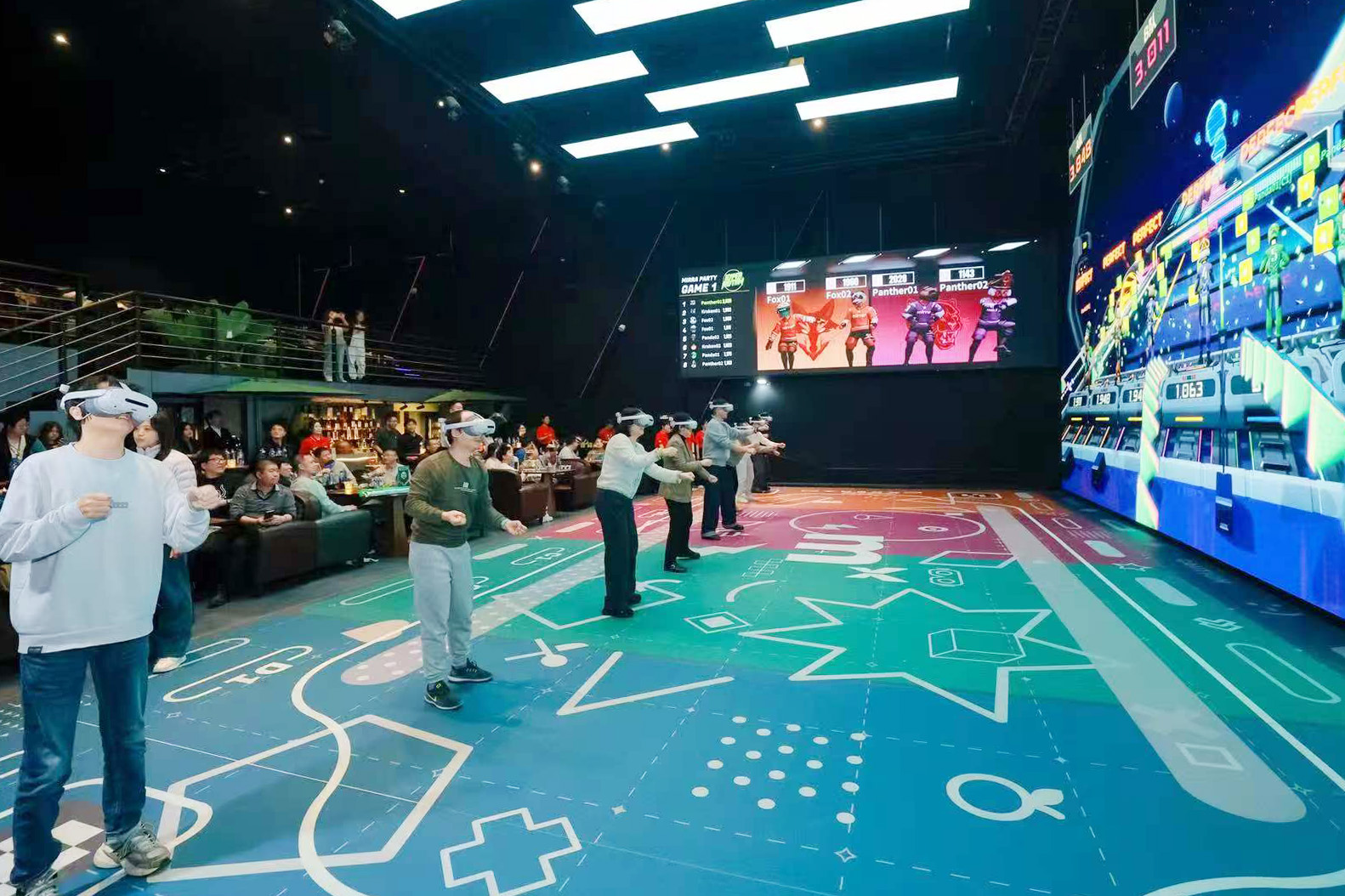 耀莱一号Mirra奇镜派对融合厅以“文化+科技”为内核,将科技与文化娱乐有机结合,打造“电影、游戏、演出、餐饮”为主要内容的多元社交空间。通过空间复用与多元业态为影院经营开辟新可能。空间中特别引入“Mirra奇镜派对”VR大屏互动游戏,以多源融合动作捕捉系统为核心,结合实时8K渲染与AI驱动的互动视觉生成技术,实现多人即时动态成像,为玩家带来电影级画质的沉浸体验,玩家可深度互动、同步竞技。