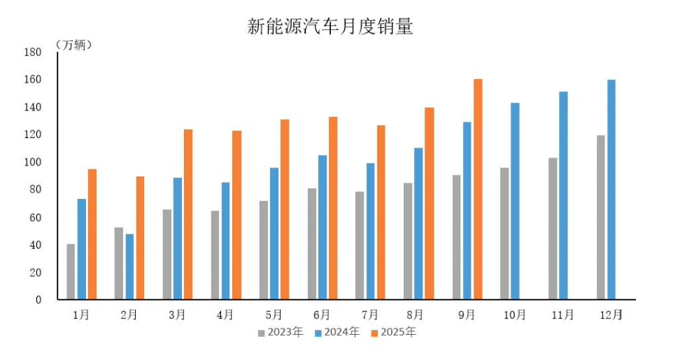 根据中国汽车工业协会数据,9月新能源汽车市场呈现强劲增长态势,月产销量双双突破160万辆大关,产量161.7万辆、销量160.4万辆,同比分别增长23.7%和24.6%。2025年前三季度新能源汽车总产量达1124.3万辆、销量1122.8万辆,同比分别增长35.2%和34.9%,延续了近年来持续攀升的良好势头。值得关注的是,国内市场销量占比相较2024年同期显著提升,这一变化反映出消费者对新能源汽车的接受度正稳步提高。