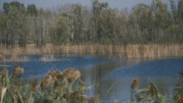 芦苇荡与宽阔的运河水面相映