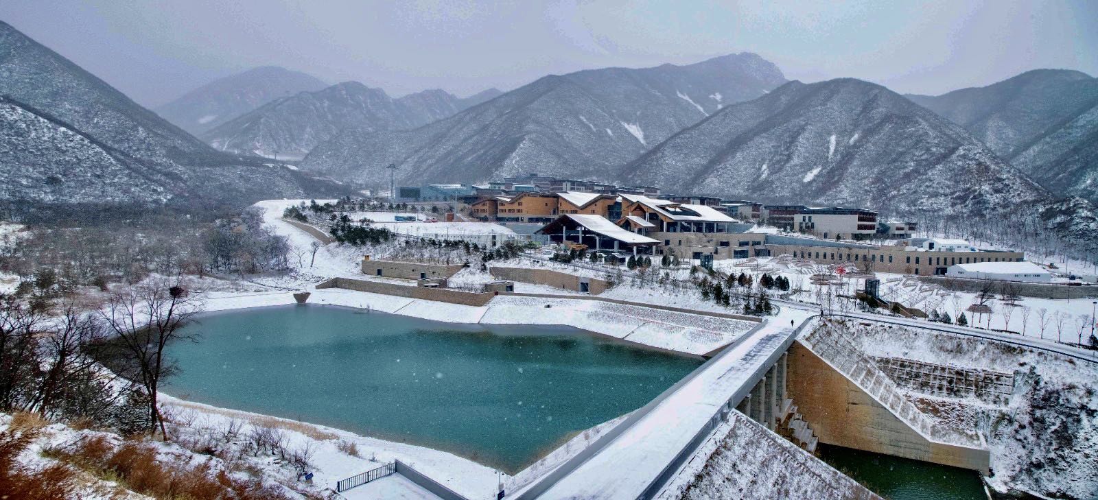 11月7日,立冬节气如约而至,雪花悄然降临延庆奥林匹克园区。雪花纷纷扬扬,似精灵在空中翩翩起舞,很快为园区披上了“白衣”,赛道、场馆在白雪的映衬下,更显庄重与静谧。