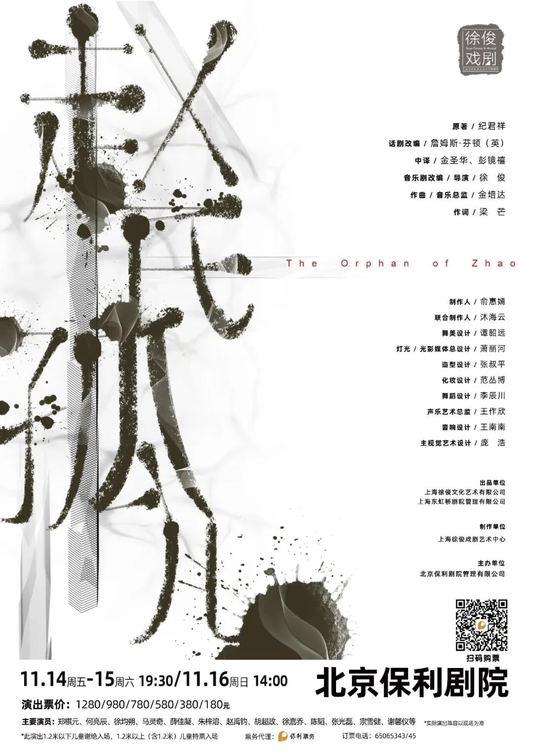 《赵氏孤儿》的故事,在《史记·赵世家》和《左传》中均有记载,后经元杂剧的改编走向民间。慷慨近乎残酷的献身甚至献儿,蹈火赴汤般的气节与义举,充满了浓烈的高古情怀。而音乐剧《赵氏孤儿》采用由英国诗人詹姆斯·芬顿创作的话剧底本,用现代伦理语境为人物的动机与行为做出合理阐释。