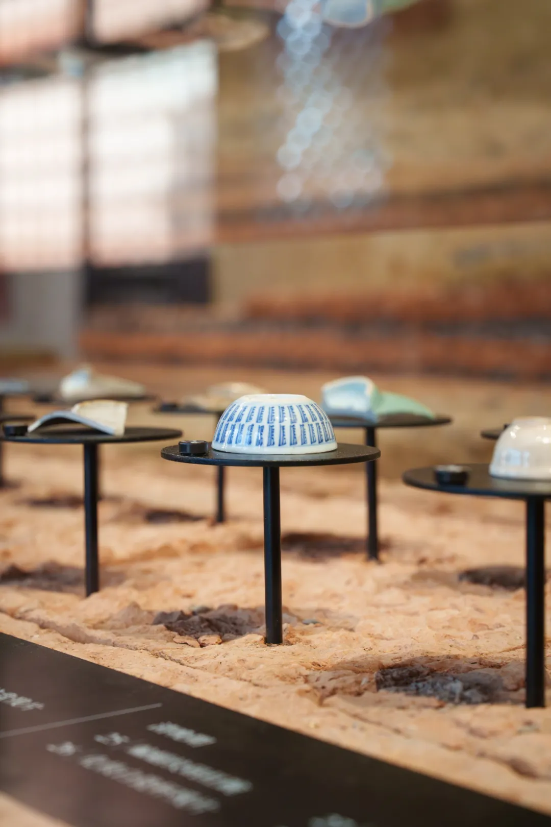 前殿展厅单元主题为“紫禁城下的大地史书——元明清三叠层”,通过中心展台以及“管窥金元”“永乐肇造”“崇基荡平”三个版块讲述清宫造办处所在区域的前世:元大都的吉光片羽、明代营建紫禁城时打下的万世不拔之基、明嘉靖时期对紫禁城外西路的改造。造办处等遗址出土的各时期建筑构件、营造工艺展示与明早期瓷器精华,将带领观众深入时光的缝隙,感受紫禁城的成长年轮。