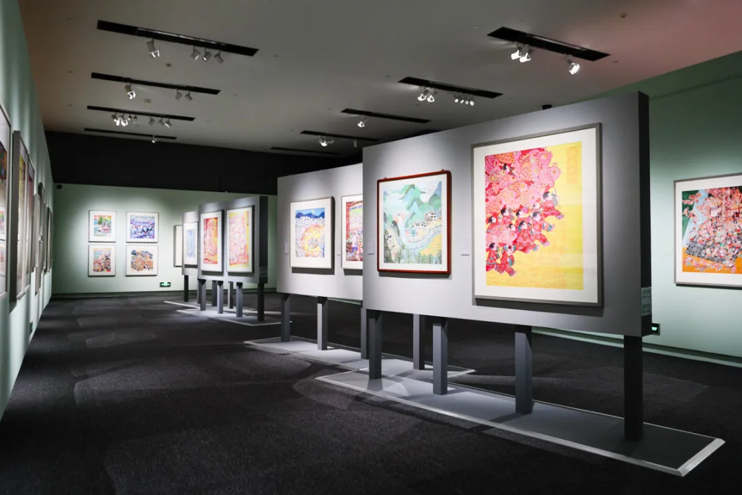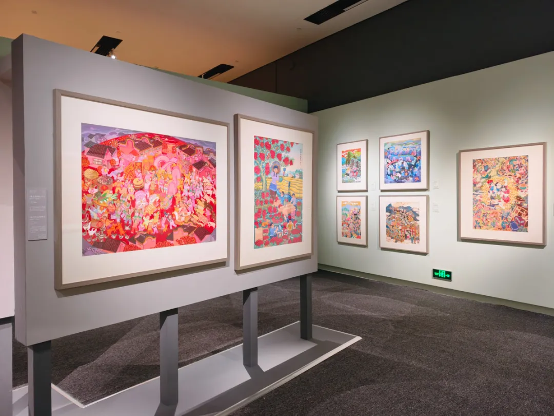 本次展览展出由各地选送、专家评审入选的作品278幅,以及经典作品、文献资料等70余件/套。展览以“乡村活力·时代精神”为主题,分为“叙民俗”“展农事”“焕新貌”三个部分,既有描绘舞龙舞狮迎新春的欢腾场面,也有表现了秋收冬捕的劳动场景,勾勒出乡村振兴的崭新画卷。从生活习俗、生产劳动和时代发展三个角度,呈现新时代农民画的创作现状,展现新时代中国乡村发展和民众生活。