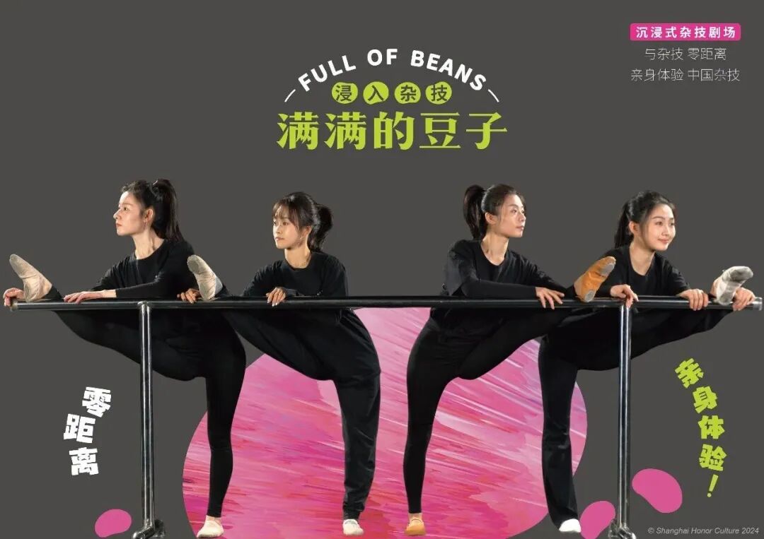 “满满的豆子”来自英语俚语“Full of Beans”,是充满活力的,生机勃勃的意思。杂技需要演员具备强大的力量、精湛的技巧,还有团队的紧密配合。