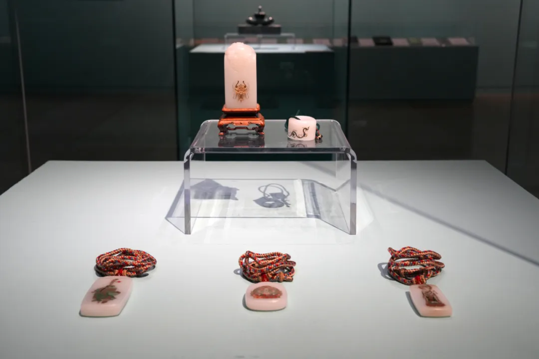 后殿展厅单元主题为“紫禁城的手工技艺中心——清宫造办处”,通过“金玉作”“造办处出土玻璃制品”“清代瓷器”“做钟处”“匠人日常”等版块,展现内务府造办处作为清代紫禁城中御用器物的生产中心以及中西方文明交流互鉴历史舞台的重要地位。造办处作坊出土的西洋钟表构件、玻璃制品、玉器玉料等均为首次面世。