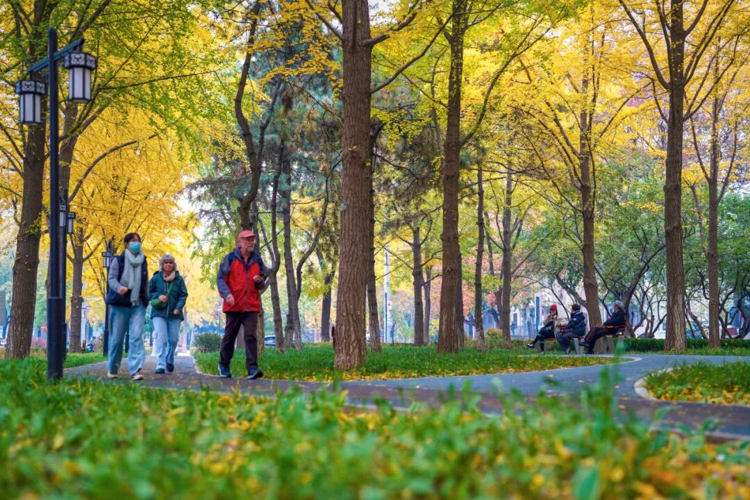 秋意正浓,焕新亮相的皇城根遗址公园迎来最美时节。百米银杏道金黄璀璨,落叶铺地,沙沙作响,成为市民争相打卡的“秋日限定”。摄影爱好者林女士举起相机,记录下改造后更丰富的绿植与花卉,“更出片了”是她的由衷赞叹。
