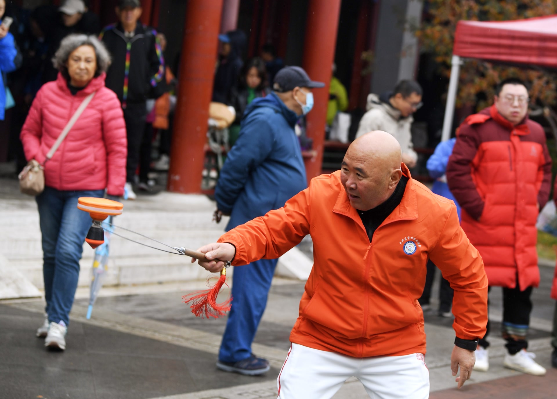 作为“广聚宣南”三年行动计划的重要组成部分,本届空竹文化节首次引入“悠然市集”,设置京味儿生活区、非遗展示区、运动解压区及民俗体育互动区,吸引市民游客沉浸式体验空竹制作、文创产品及传统美食,推动非遗走进现代生活,实现文化资源向消费动能的转化。