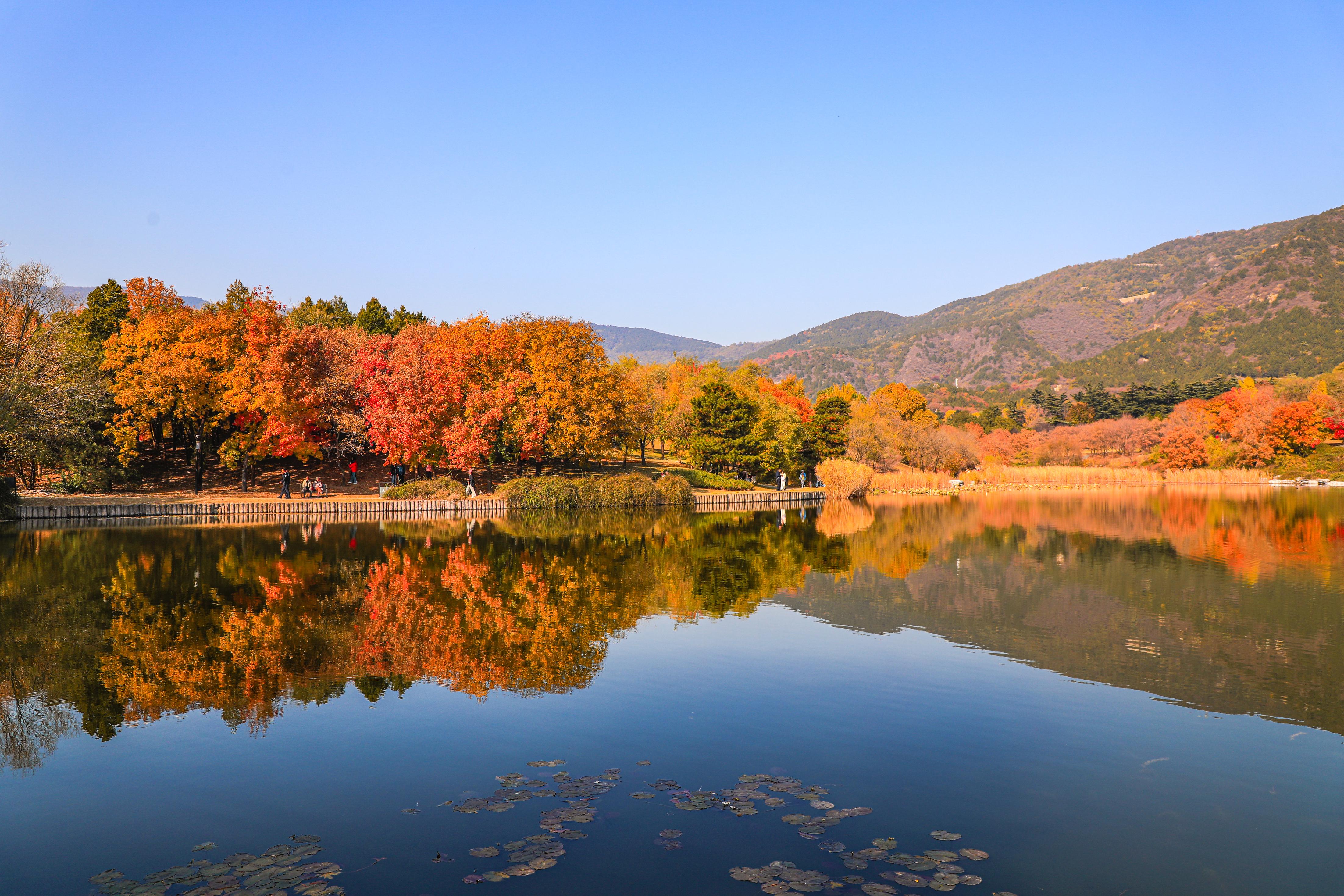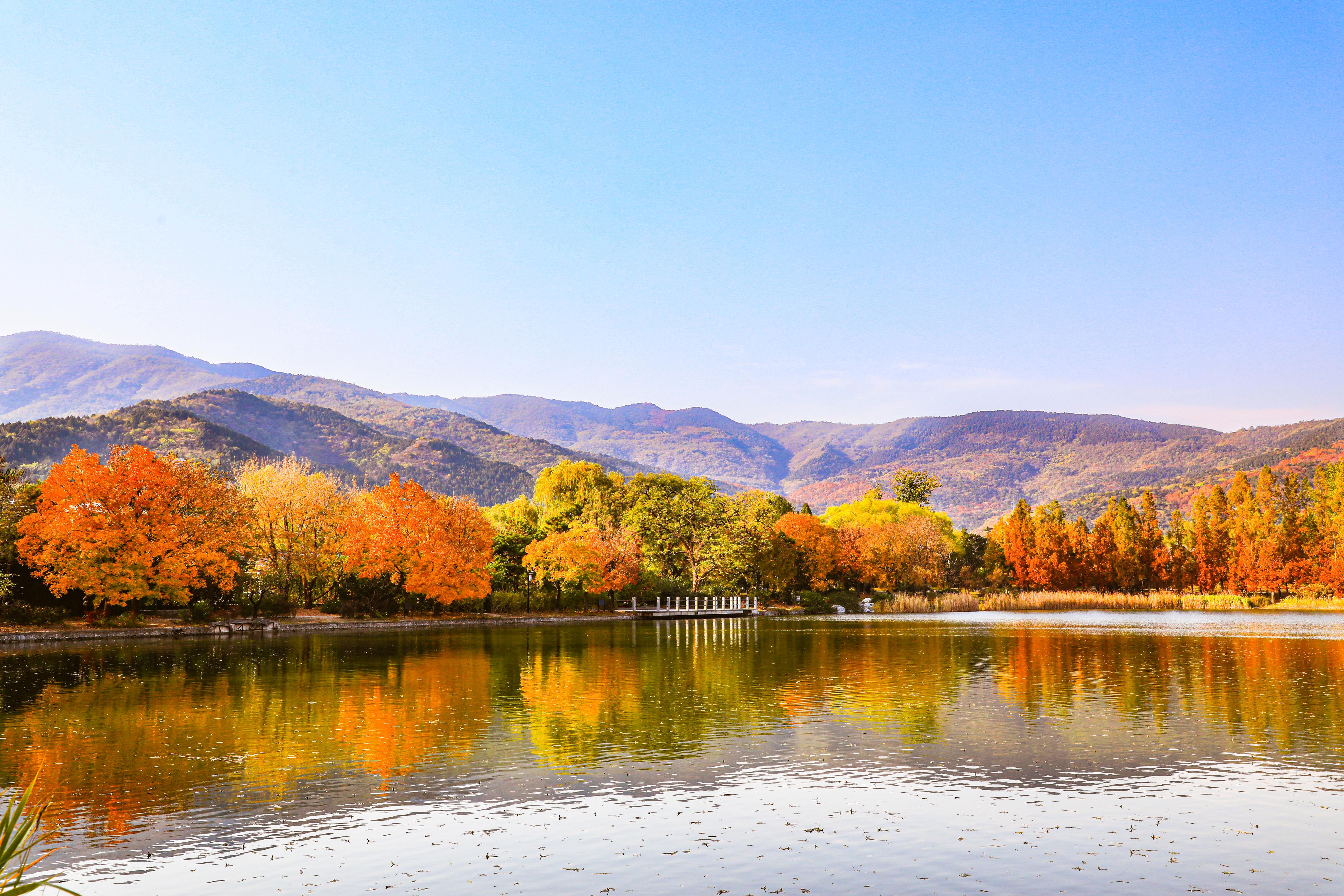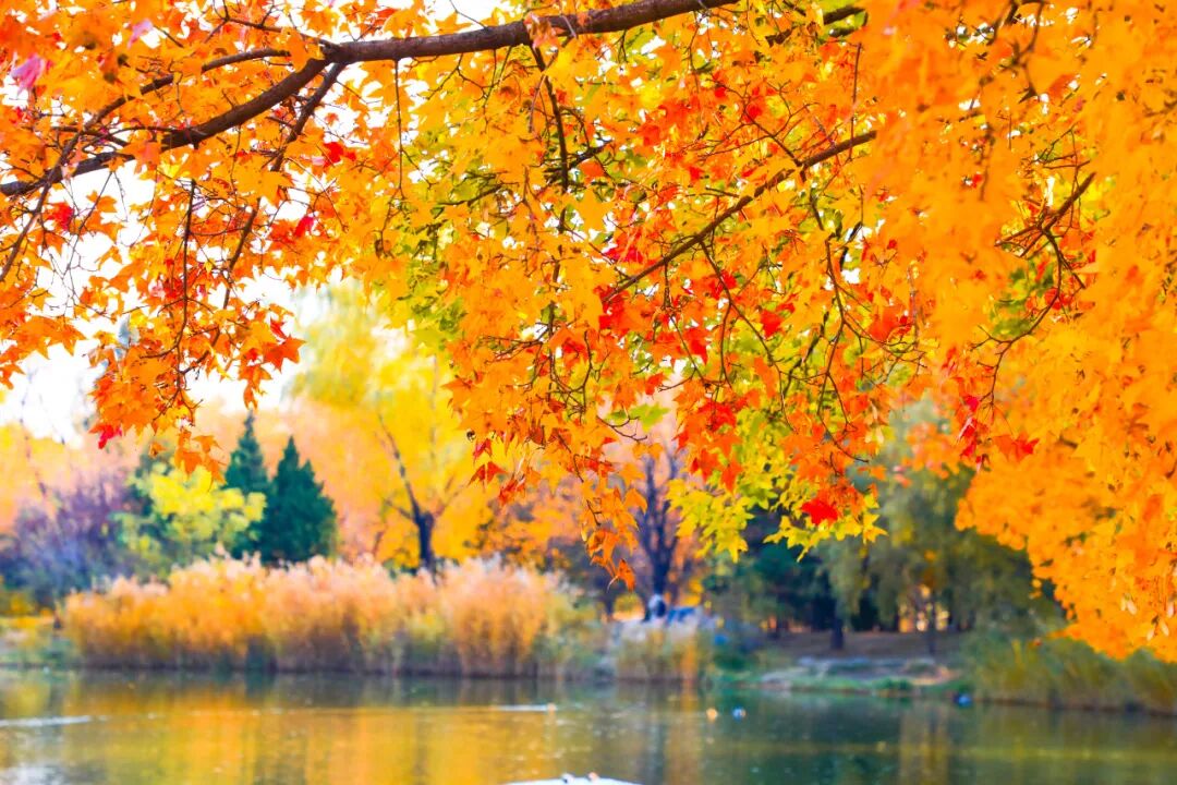 静静映照着五彩斑斓的树林