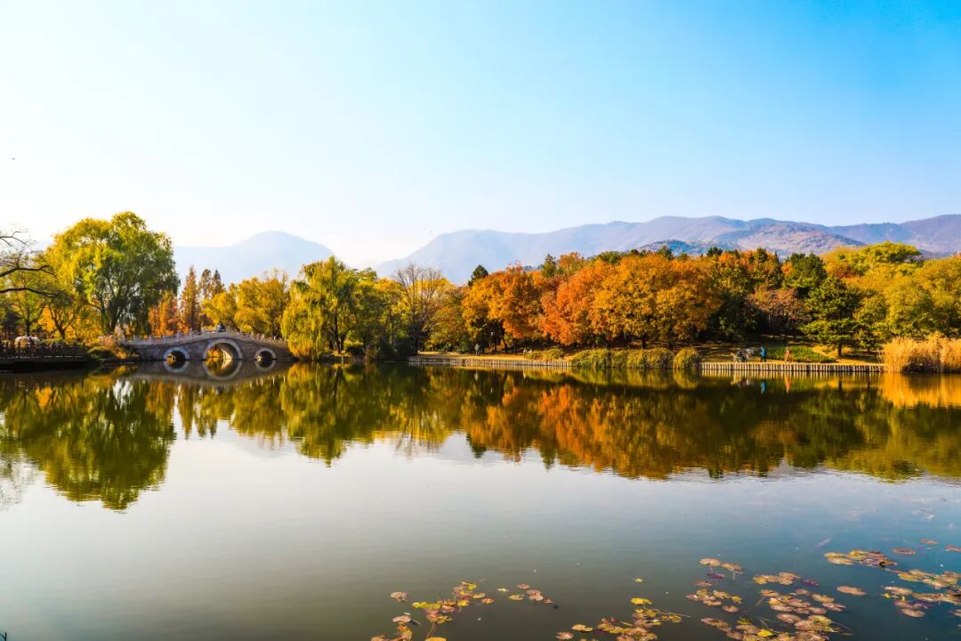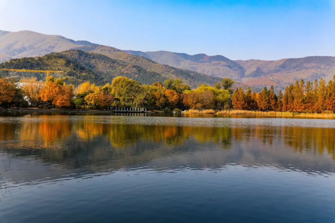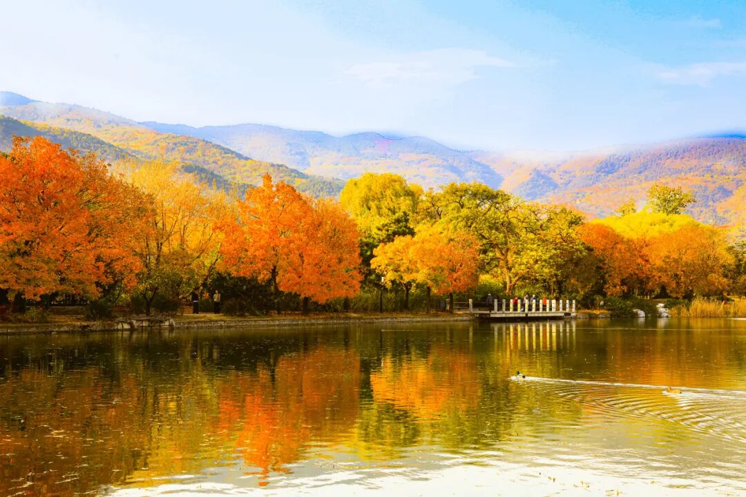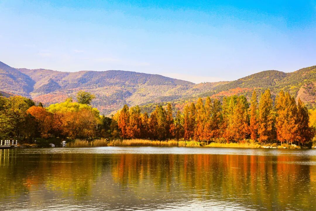 静静映照着五彩斑斓的树林