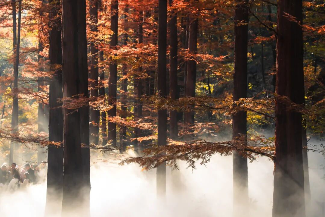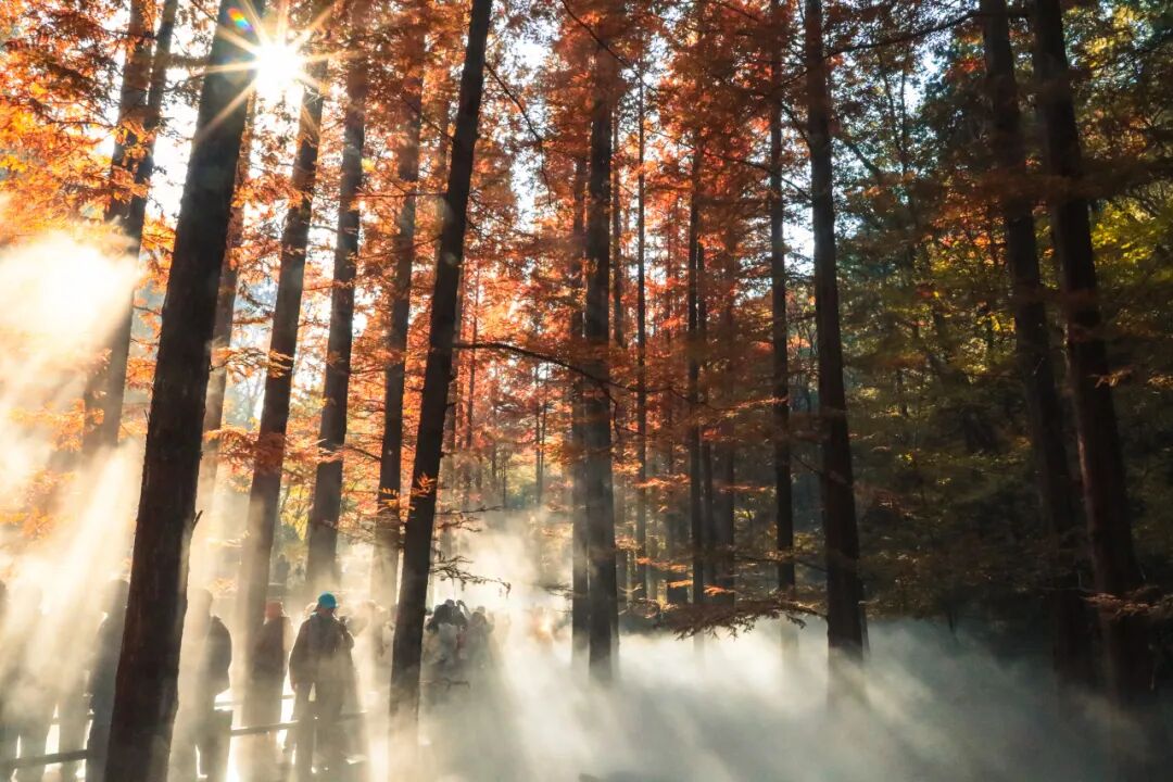 沿着被水杉尽染的栈道而行