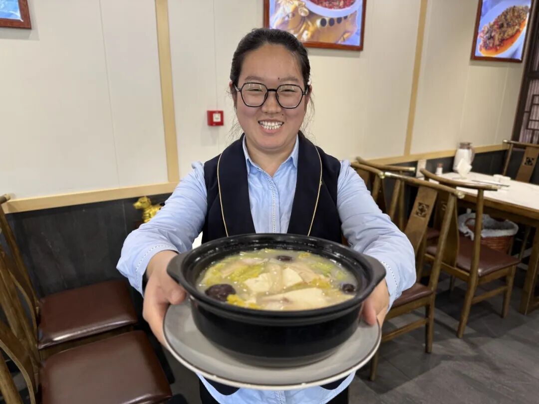 除了饺子,吃羊肉也是冬天的一大食俗。“八大春”之首、江苏菜名店同春园以宁夏滩羊打造“暖身套餐”,创新推出笋尖烧羊肉,酸脆的酸菜、鲜嫩的笋尖与软烂的羊肉同烧,既能中和羊肉的膻味,又增添了层次感。此外,在立冬当天到店消费的顾客,可以免费获得一杯红糖姜枣茶。“姜枣茶驱寒暖身,搭配饺子或羊肉菜正合适。”同春园前厅经理王华兵介绍说,希望通过这份小小心意,让顾客在品尝美食的同时,感受到老字号的温度,度过一个温暖舒适的冬季。