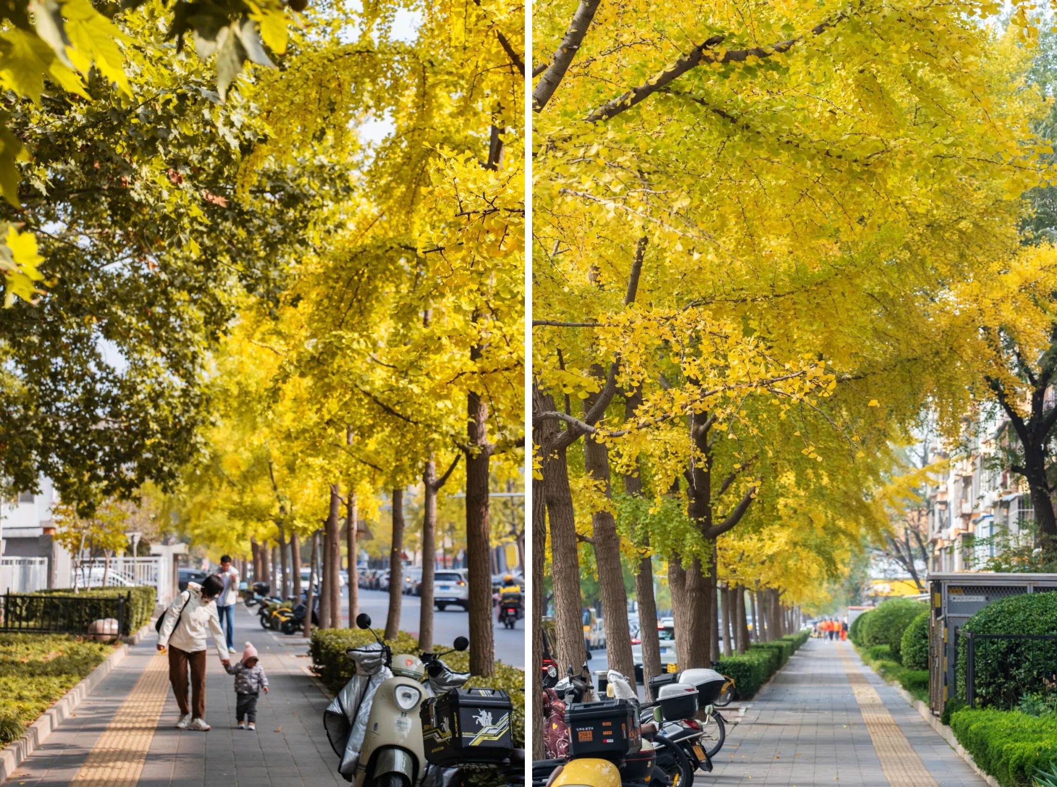 秋风熙然,拂过热闹的街道,拂过银杏的树梢,将辉煌而灿烂的秋色,连同周边的建筑、来往的人群和车流共同装点成一条律动的鎏金河。