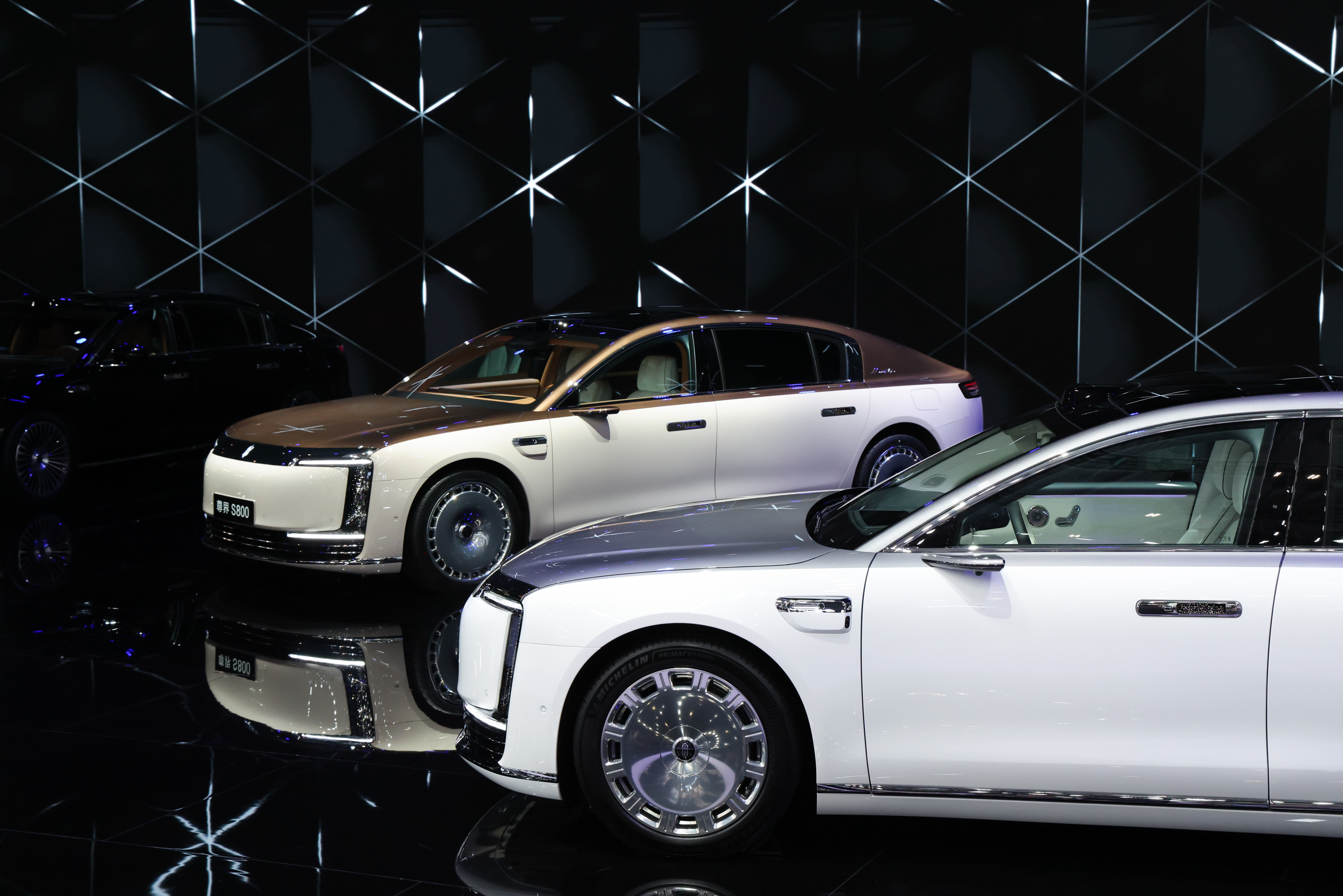2025年5月31日在2025粤港澳大湾区车展上的鸿蒙智行展台拍摄的尊界S800。新华社记者 梁旭 摄