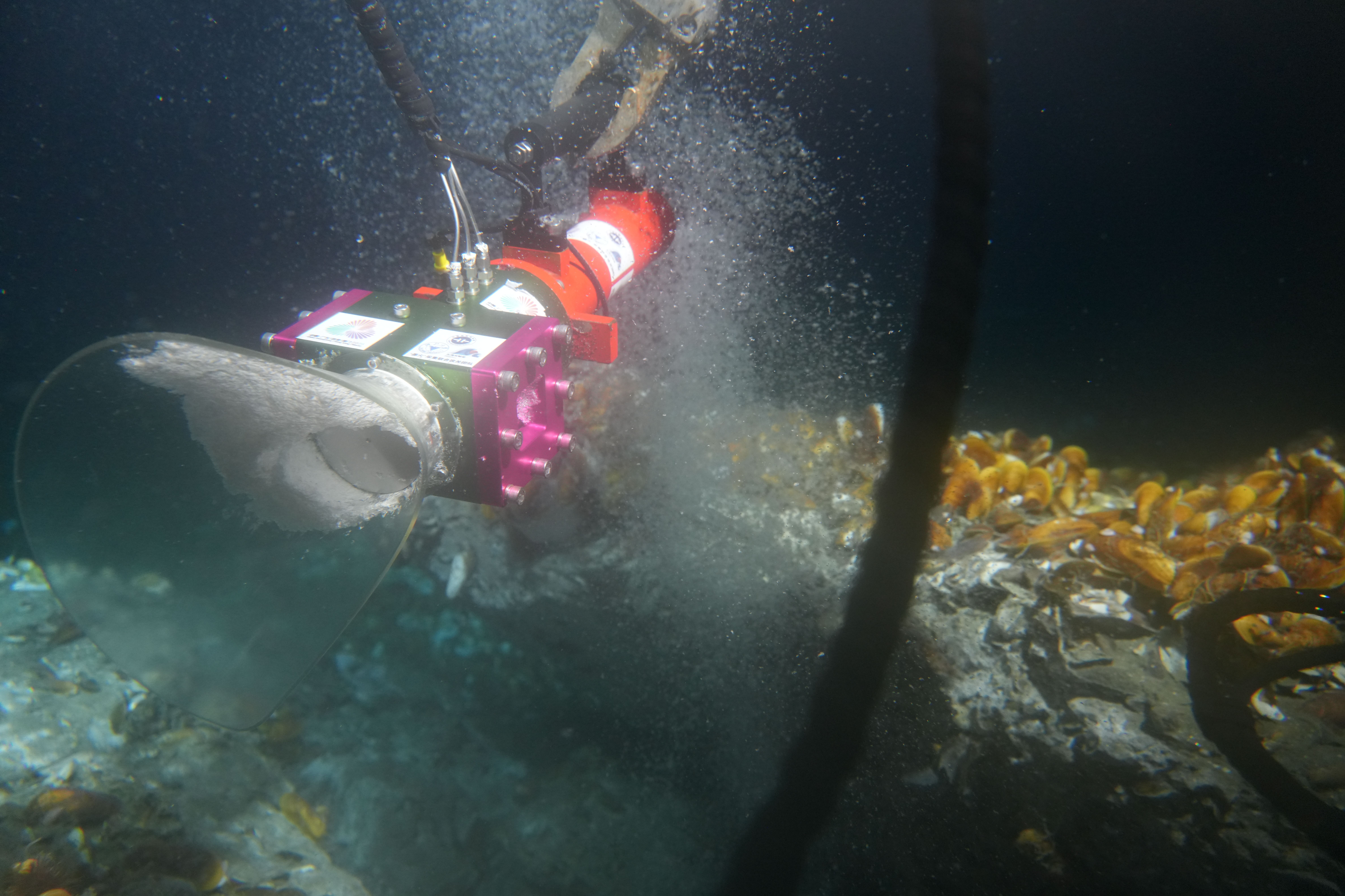 采火装置在海底冷泉喷口采集可燃冰(2025年9月18日摄)。新华社发(广州海洋地质调查局供图)
